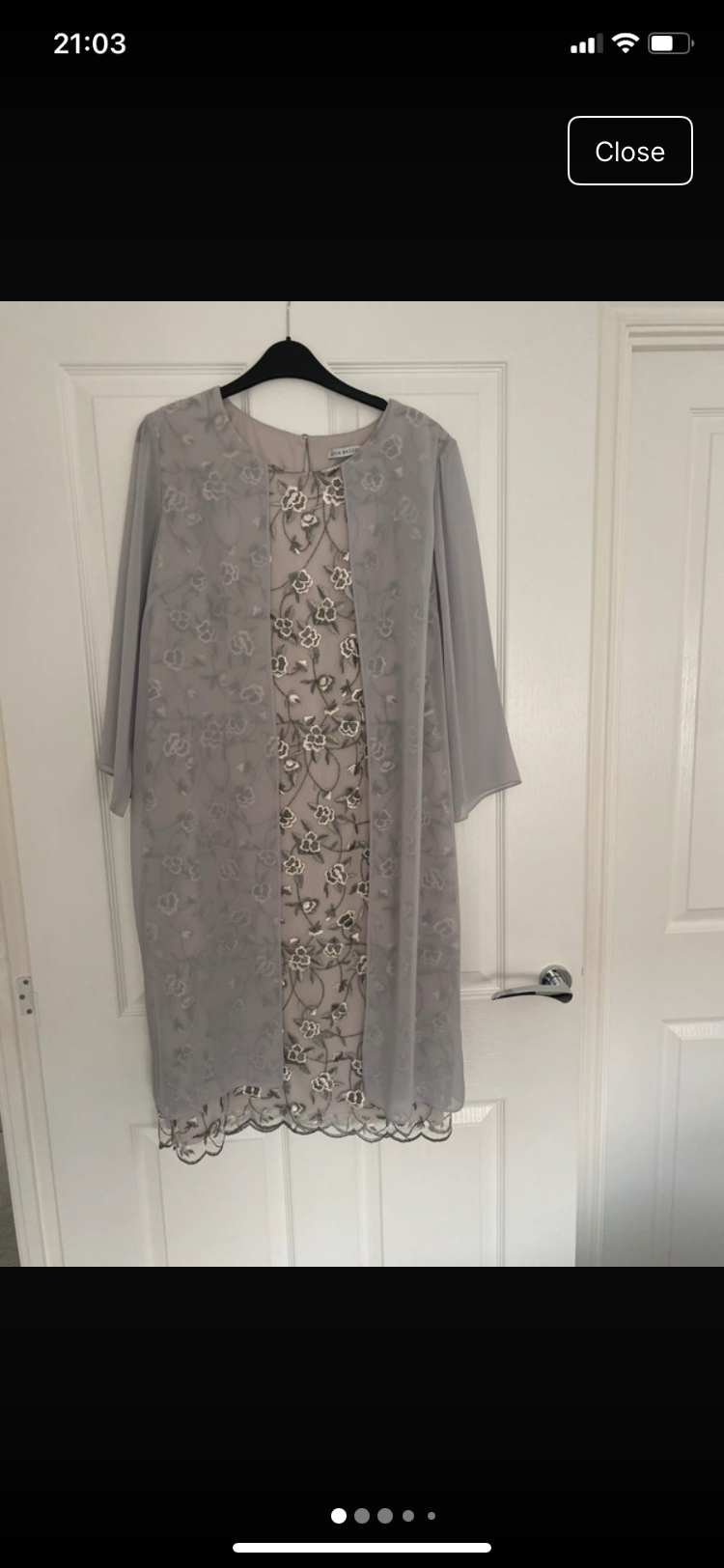 Gina Bacconi Leora Lace Dress with Chiffon Overlay Grey/Silver