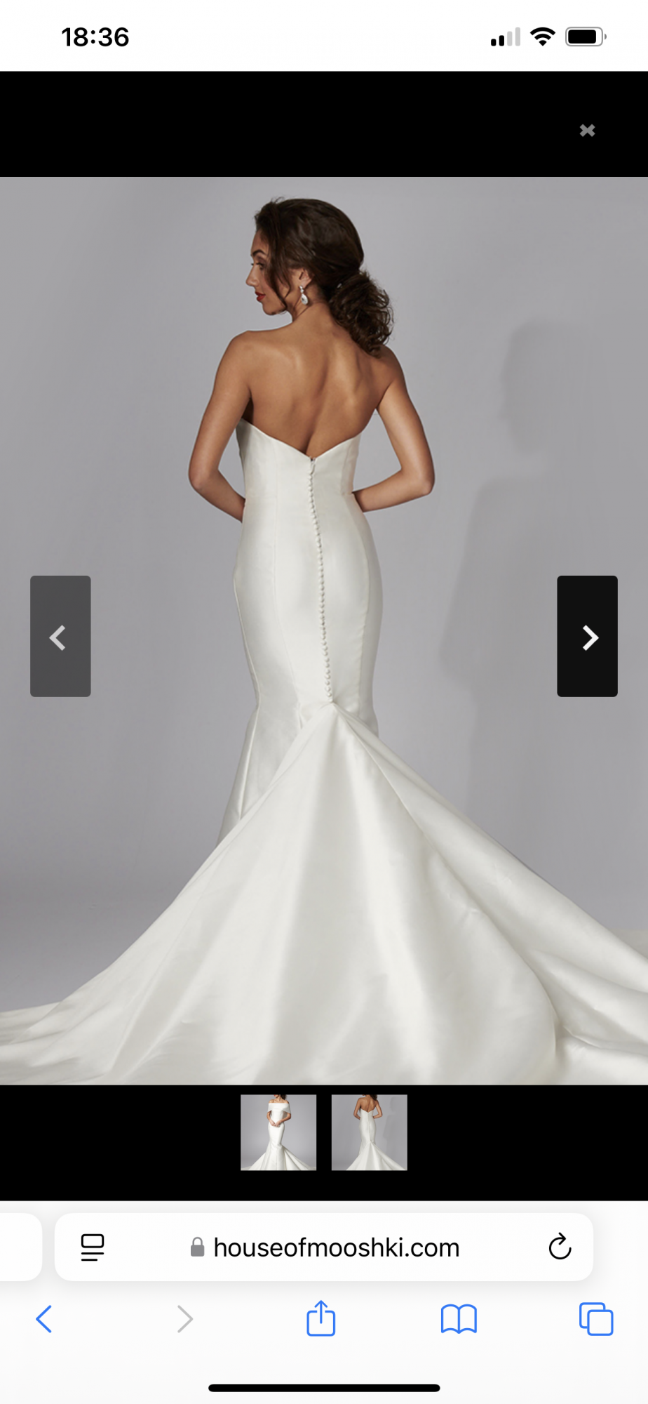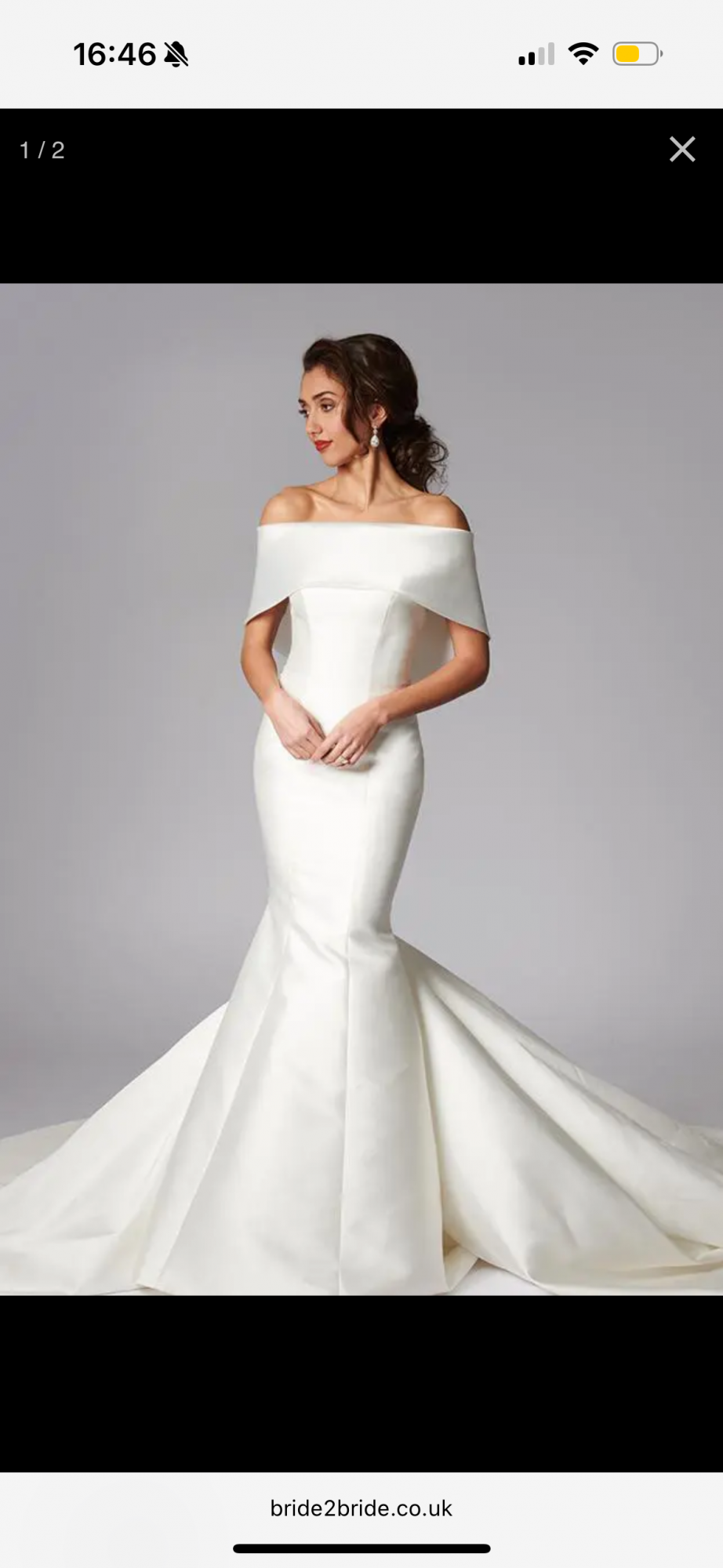 Dazzling Strapless simple fishtail wedding dress with sweetheart neckline and detachable cape. Fitted to the lower thigh and with a gentle flare, this dress has a huge 2 meter train.