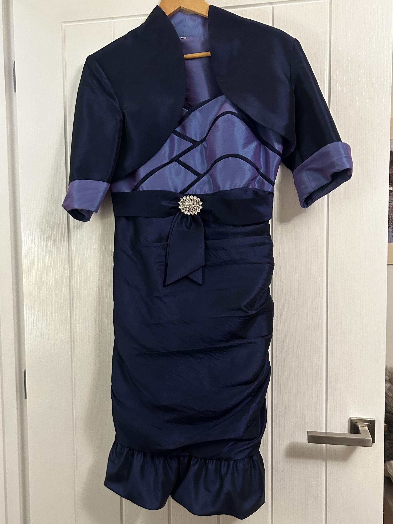 Beautiful unworn dress ( daughter's wedding was changed to wedding abroad hence change of outfit) and bolero jacket in stunning colour. Ruched detail.