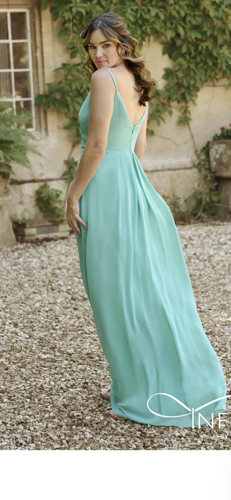 Mint Green Chiffon Bridesmaid Dress. Spaghetti strap,Fitted bust, cinched waist then flows to floor.