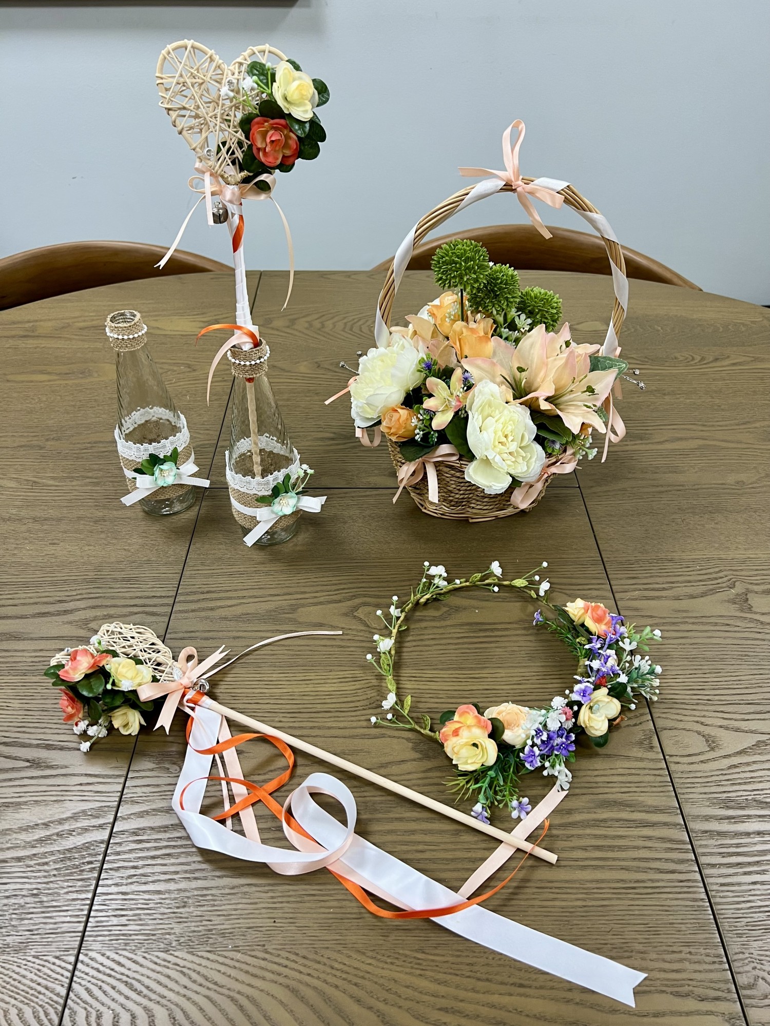 A beautifully coordinated set of wedding party florals, used once at our wedding and carefully stored (smoke-free household). Featuring soft ivory and blush tones with delicate peach accents, this collection is perfect for creating a cohesive, romantic look for your bridal party and younger attendants.