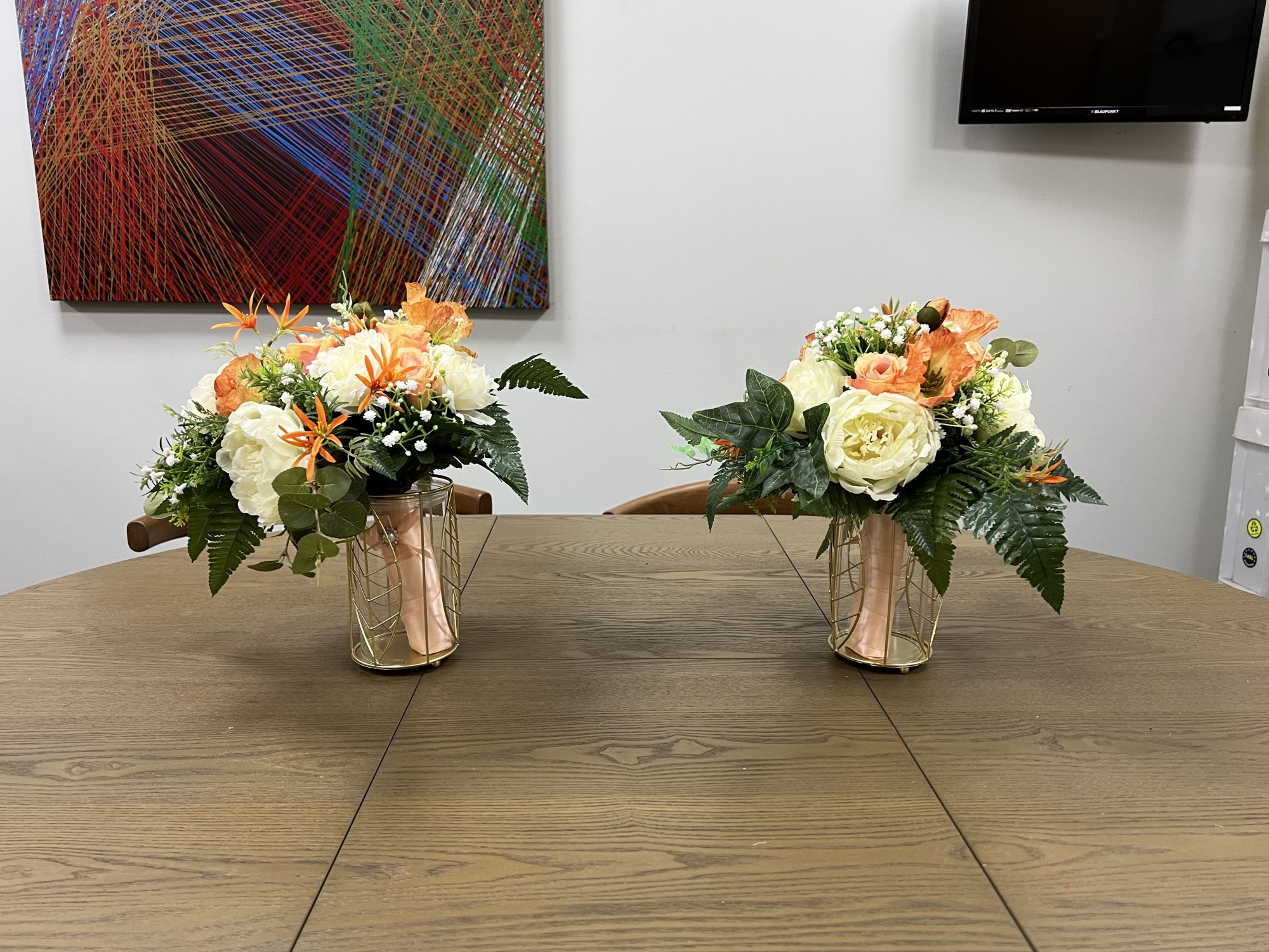 2 × gold leaf metal vases (perfect for reusing the bouquets as table décor)