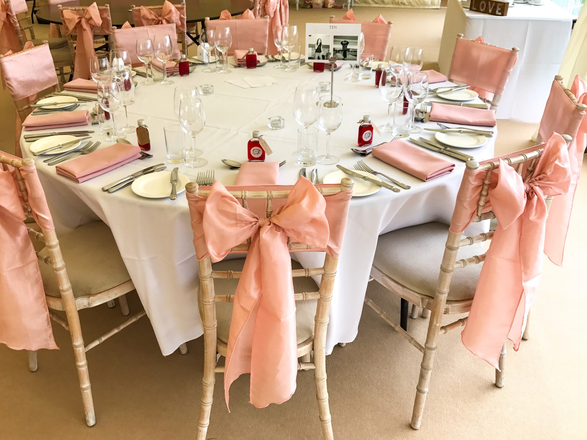 I have satin, taffeta and hessian sashes for chair backs in a selection of colours, perfect for weddings and events. I have a selection of colours. I am selling stock from my wedding decor business as I have retired. Ideal for your own wedding or to extend your own business. £0:50 per sash.