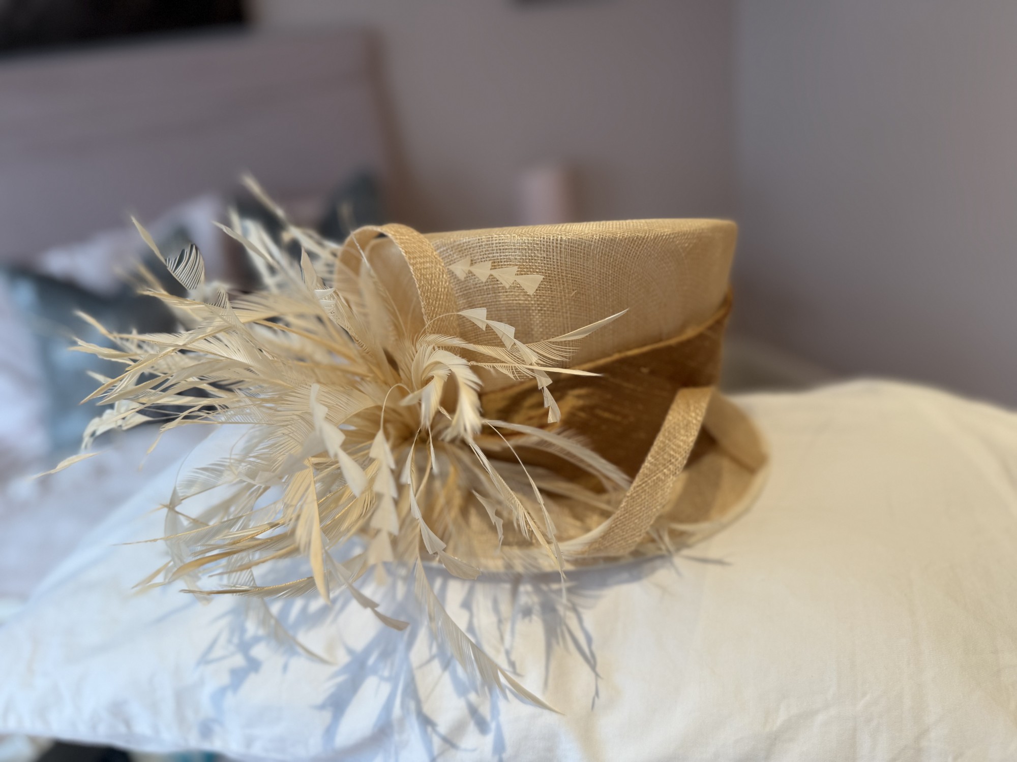 Cappelli Condochi Cream & Bronze hat with Feather detail.