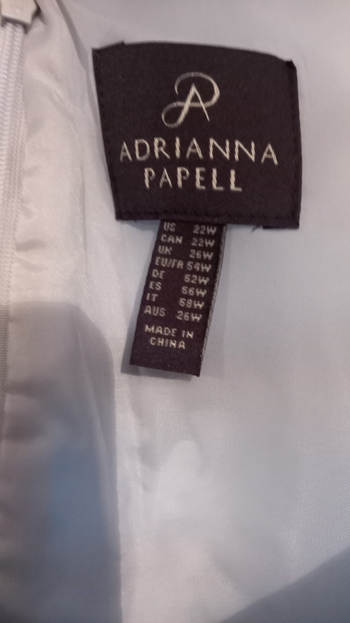 Beautiful Adrinnia Papell sleeveless V neck dress . Knee length in floral pattern of eau de Nil on silver.