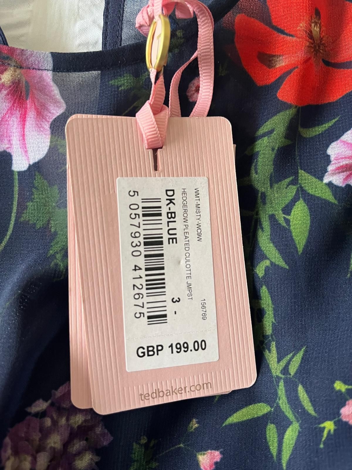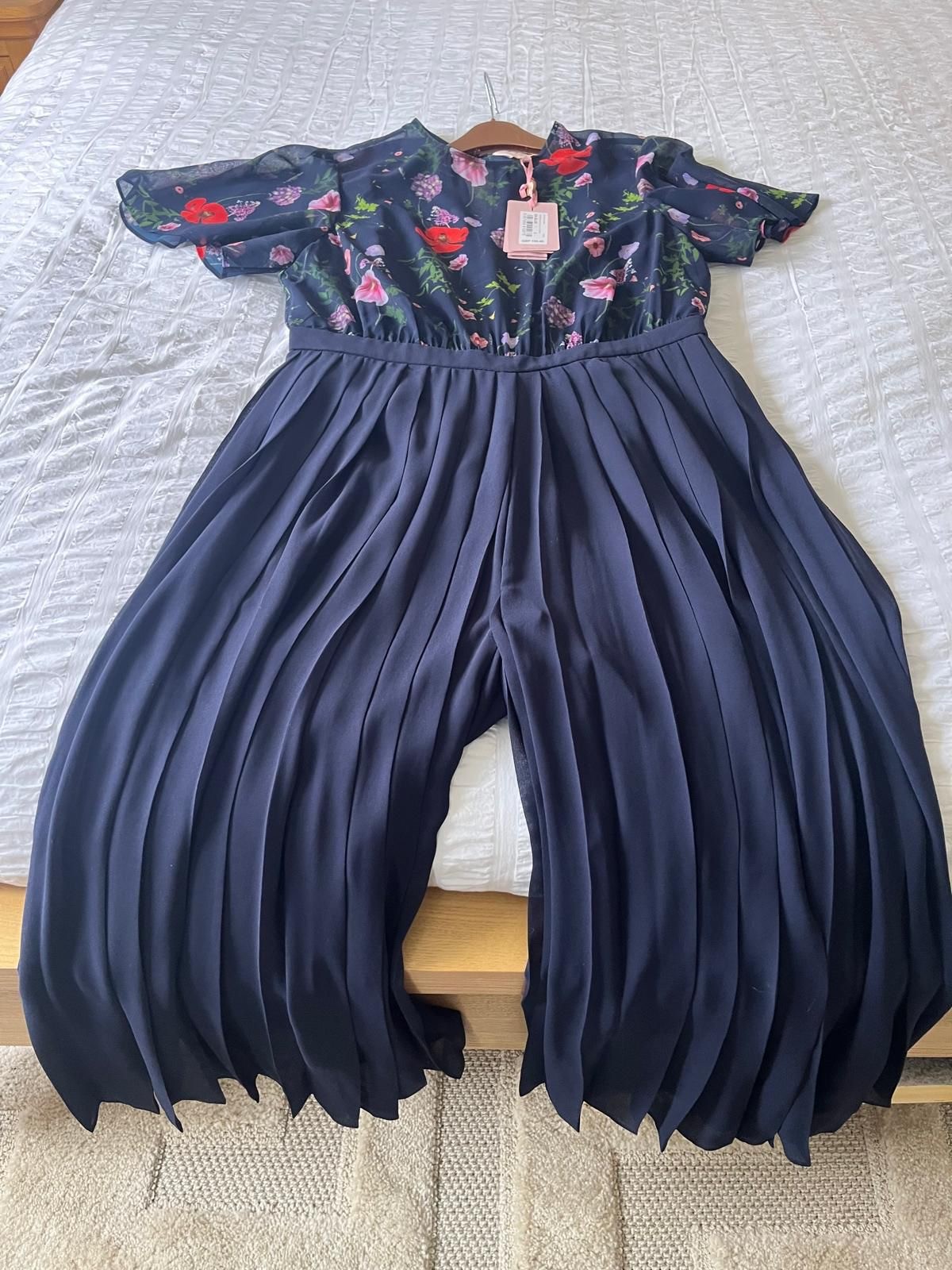 Ted Baker Navy Floral Culotte Pleated Skirt Occasion Jumpsuit Dress Size UK 10