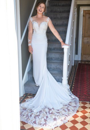 It’s very comfy for a wedding dress, not too heavy, and I felt amazing wearing it. The train makes a beautiful shape for photos and for the first dance. Although the long sleeves might make it feel like a winter dress, I did use it in summer - as the lace is so shear it let a lot of air through.