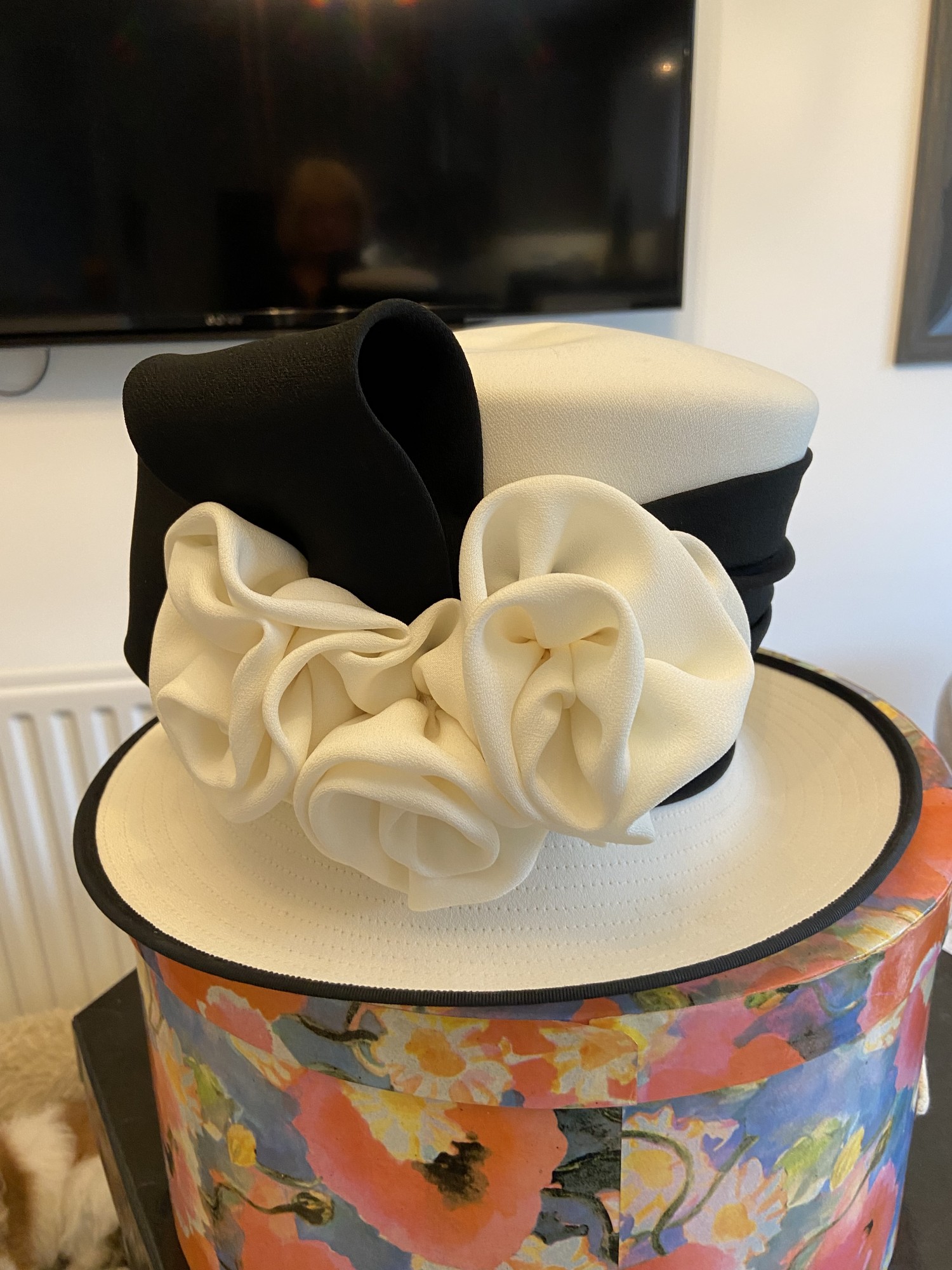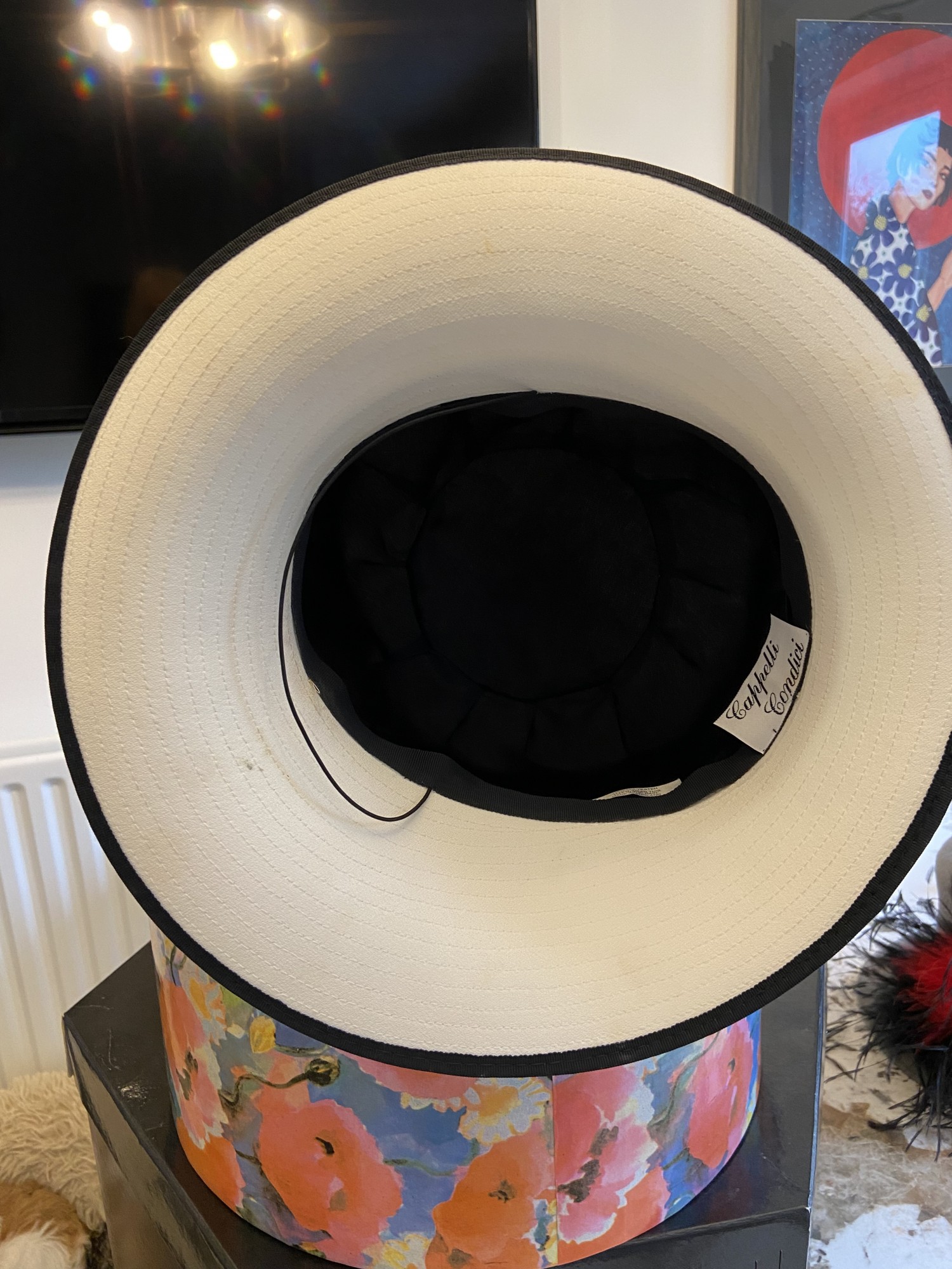 Striking black and cream Condici hat, perfect for either a wedding or the races.
