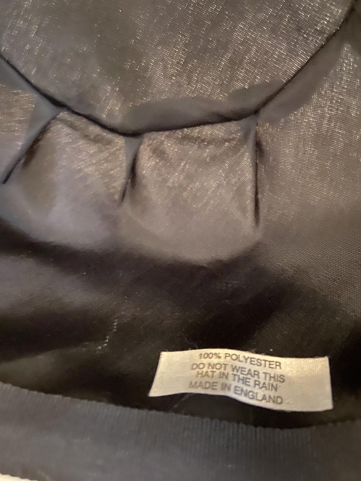 The hat is in lovely condition, however there are 2 marks on the underside of the brim which will probably sponge off but are not not able when worn.