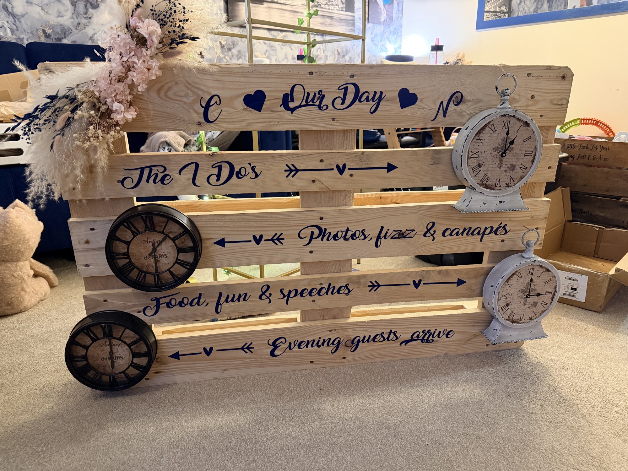 Order of the day pallets with clocks and decoration x2