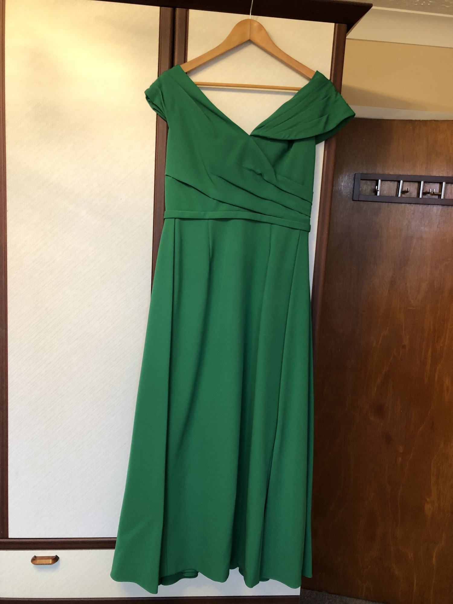 Veni Infantino dress with over skirt detail in shamrock green. Excellent condition and professional dry cleaned. Bought for my sons wedding. Made me feel very special and lots of beautiful compliments from friends.