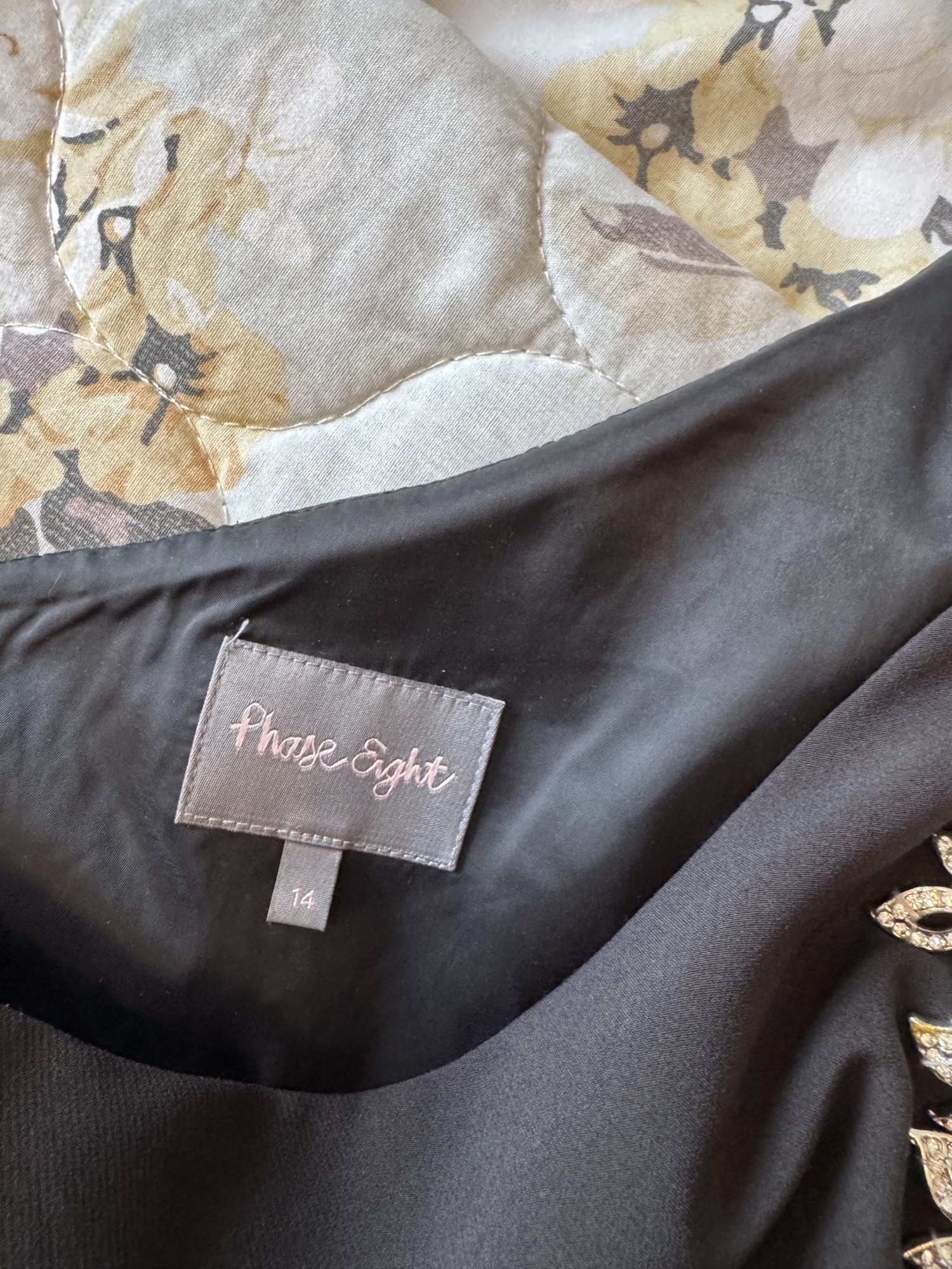 Phase eight evening full length dress. Motif has been added & can be kept or simply unstitched