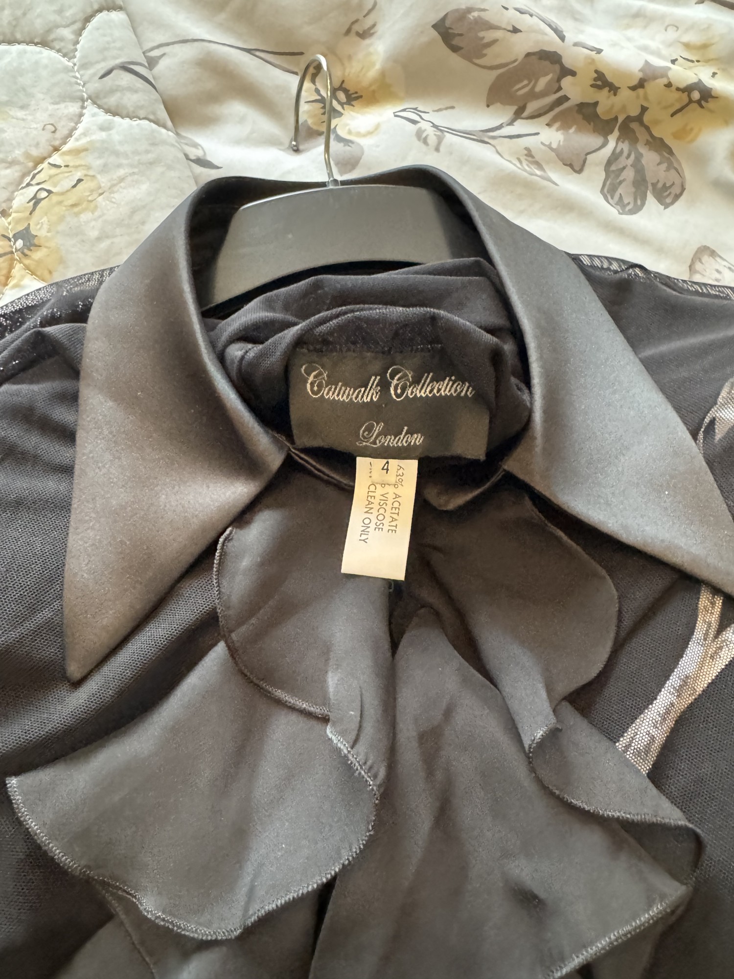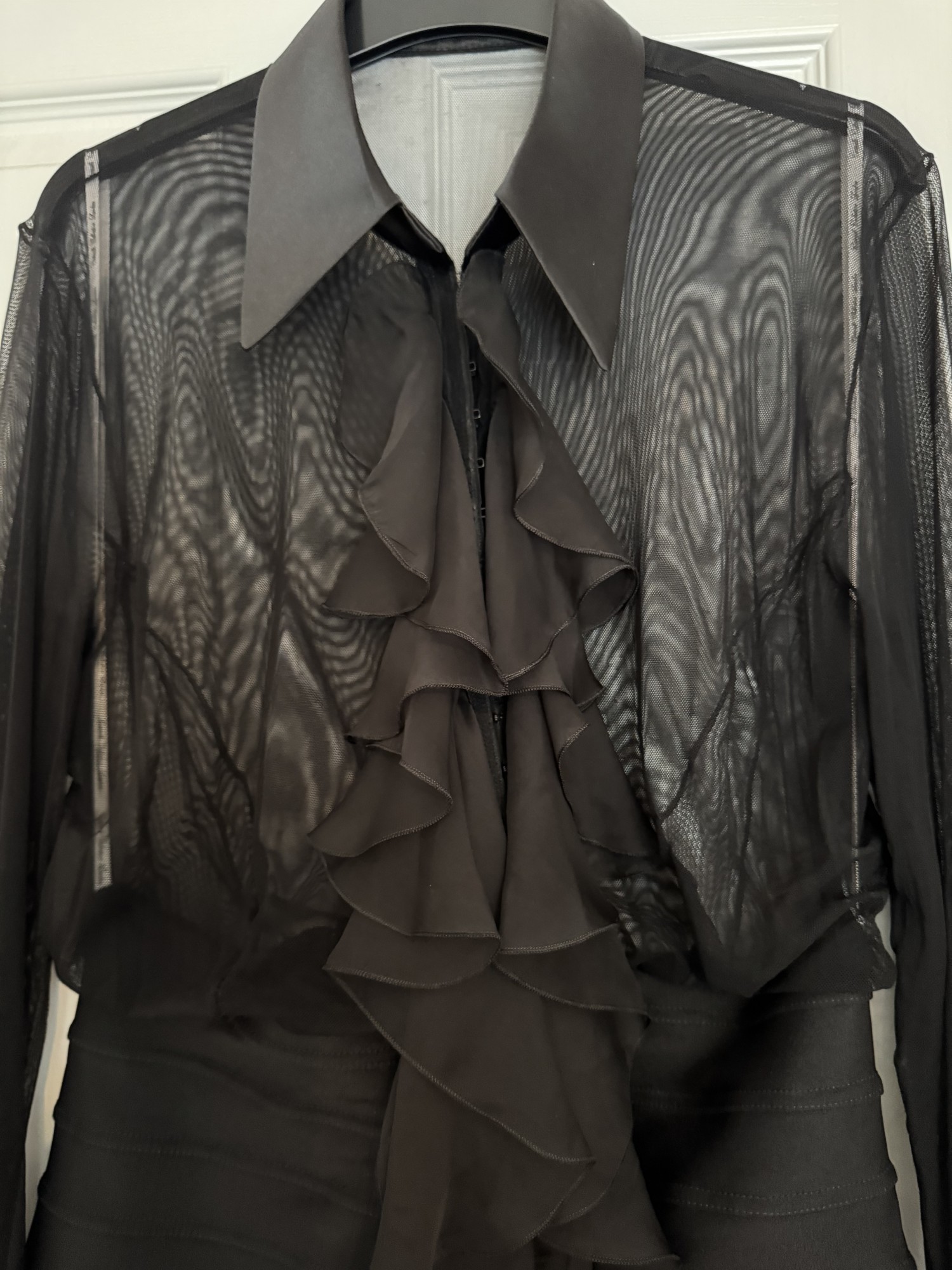 Bespoke made black sheer frill top with hook & eye fastening size 14