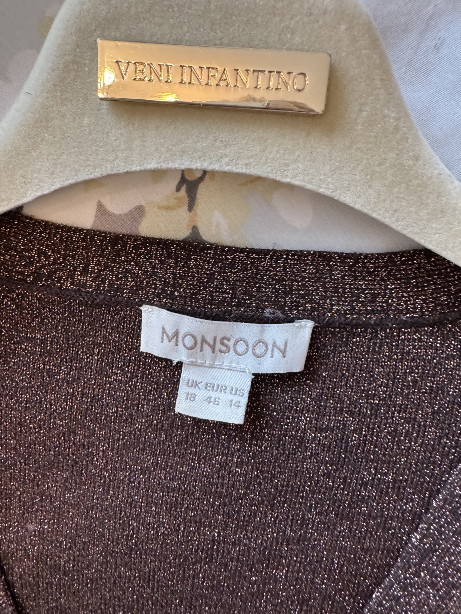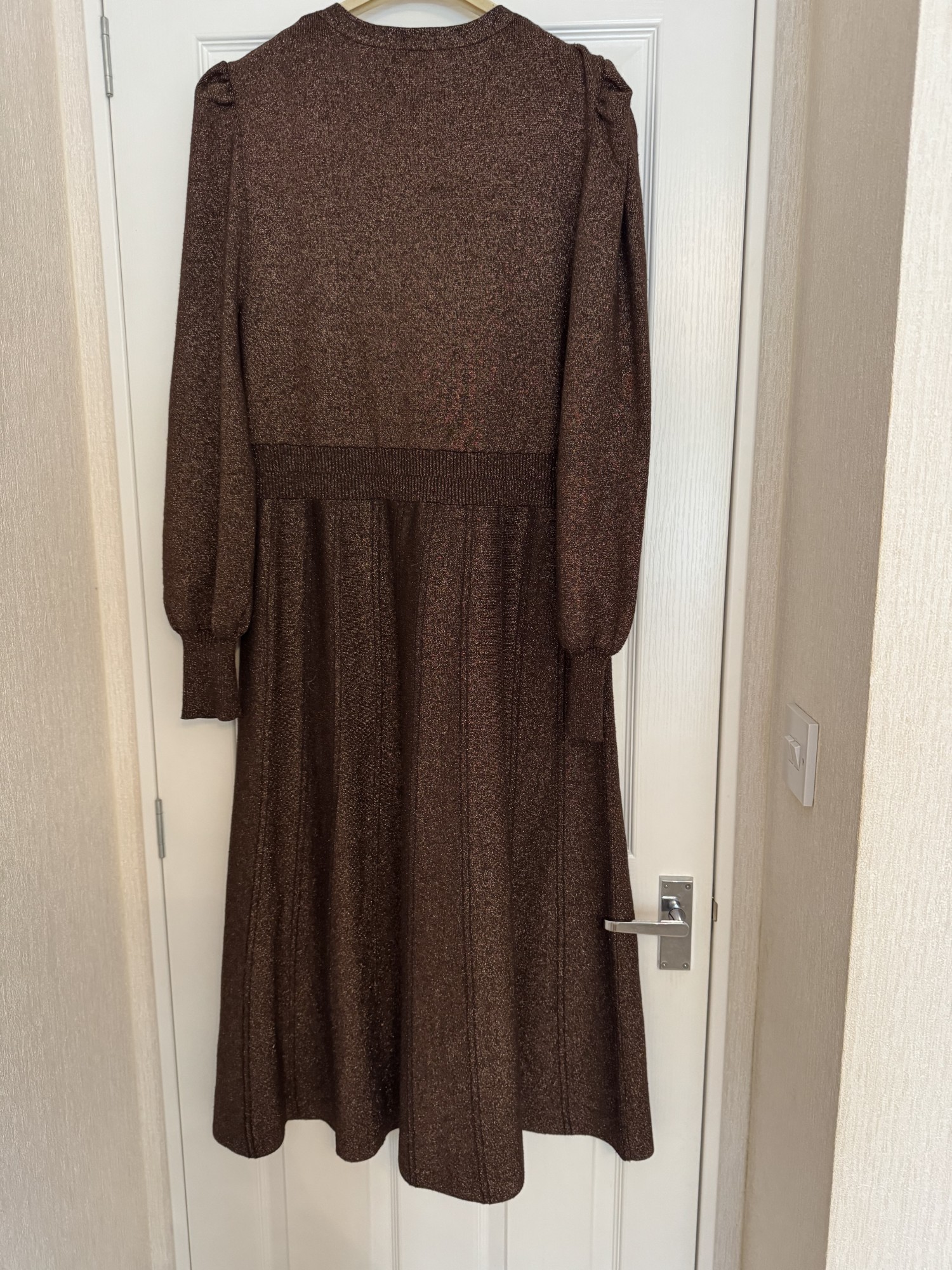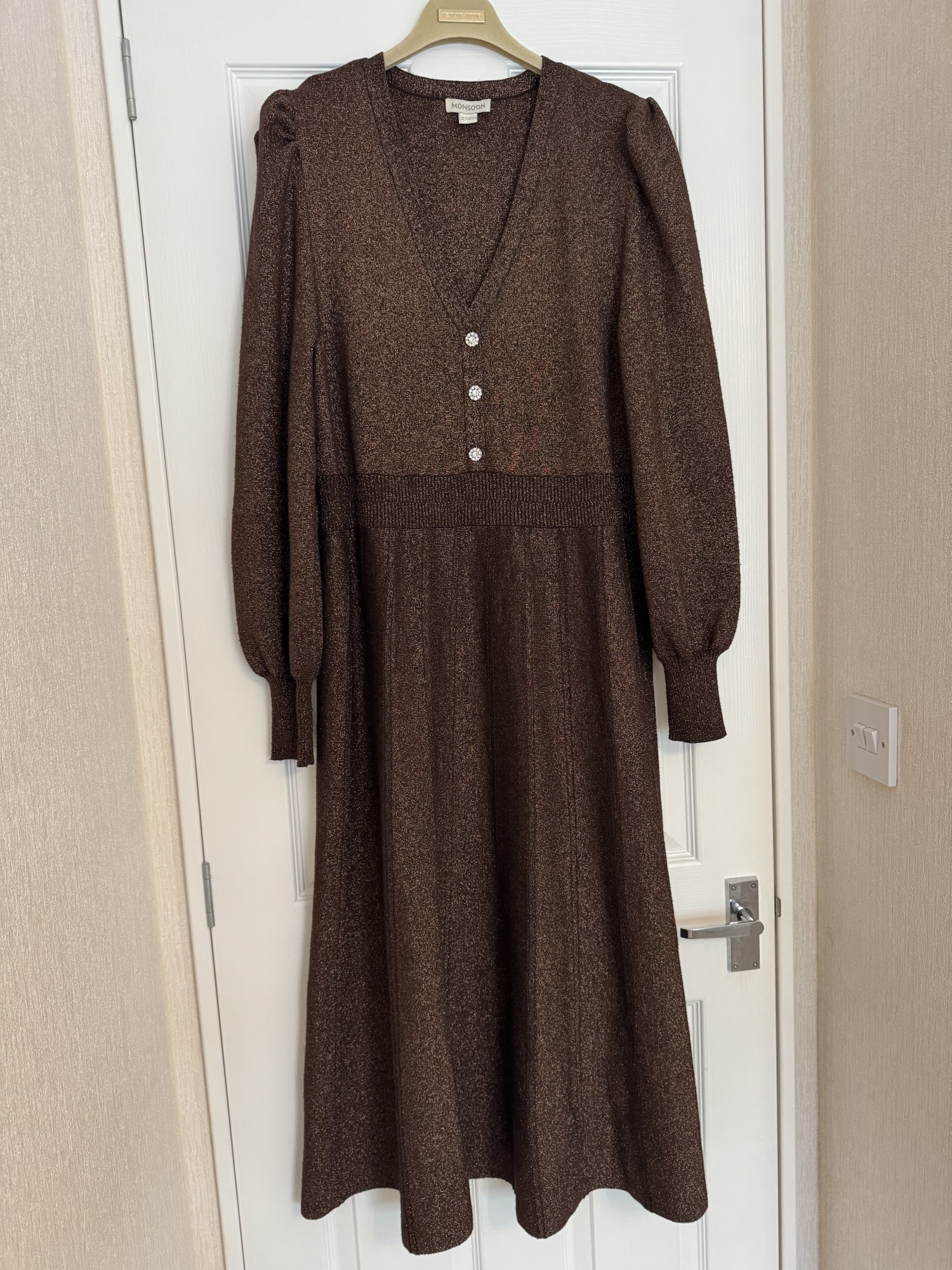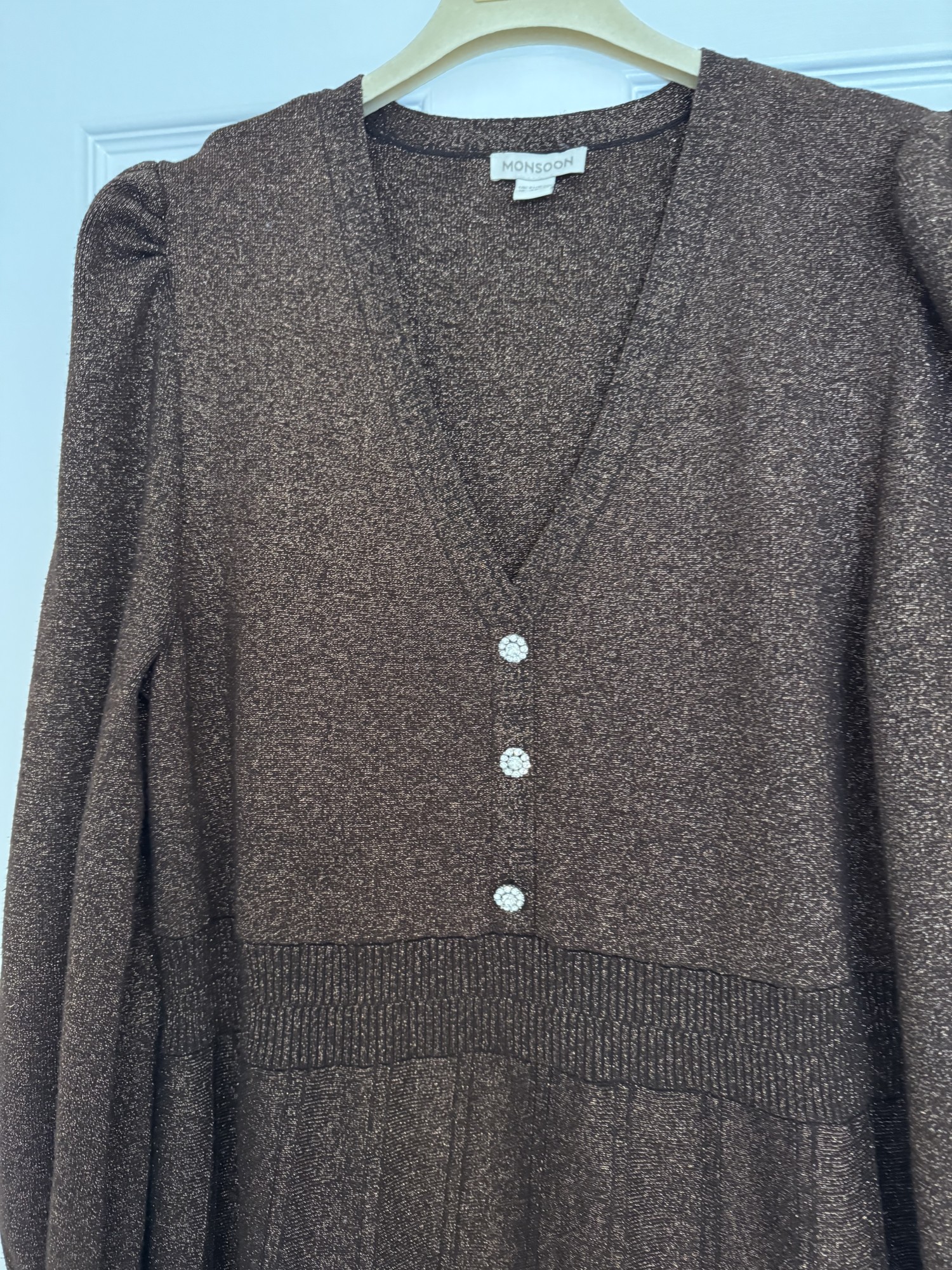 Monsoon brown knitted dress with flower diamanté buttons size 18