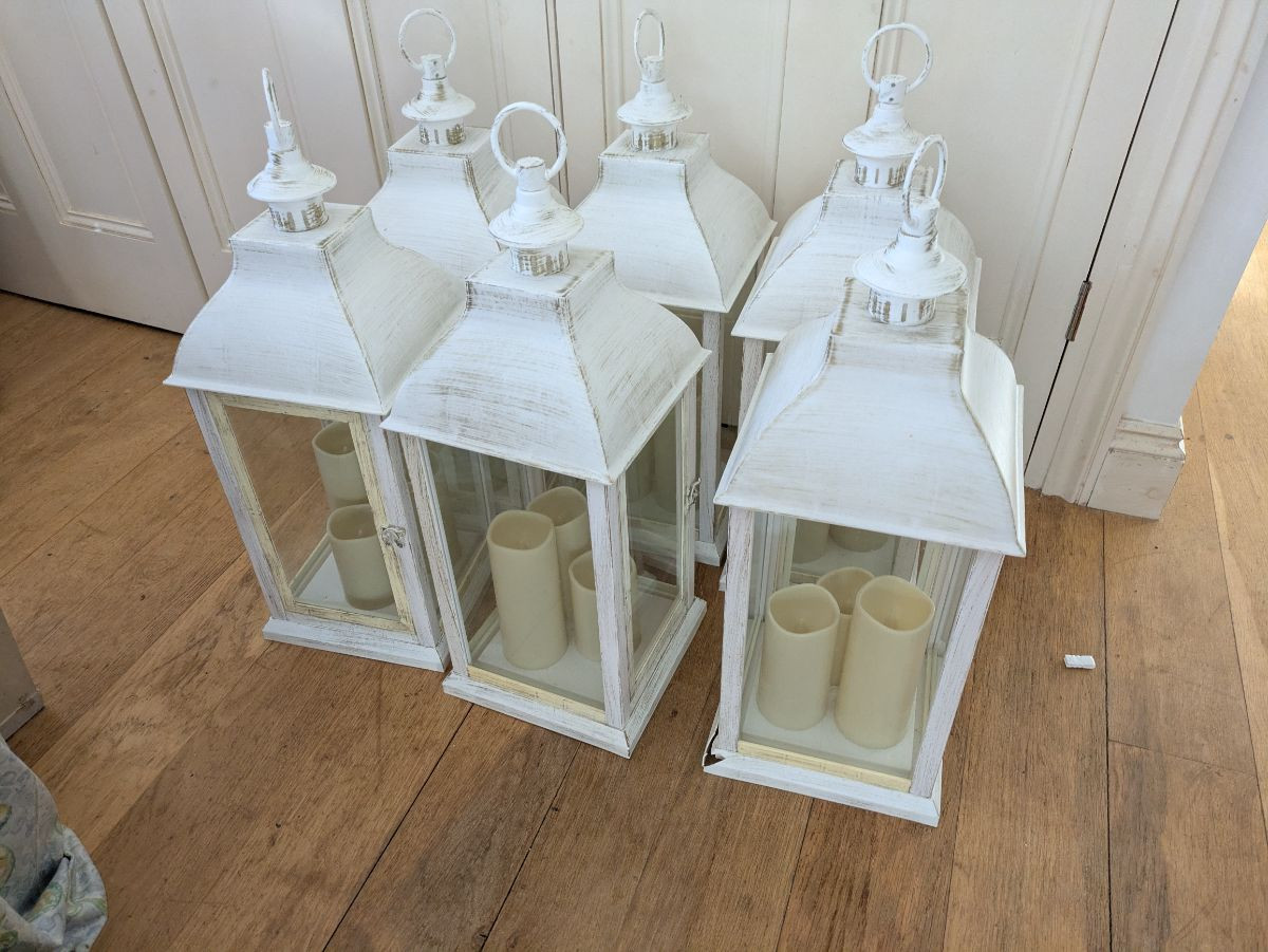 6 available. 5 lanterns are in very good used condition. Minor damage to 1 lantern - see photos - does not affect use.