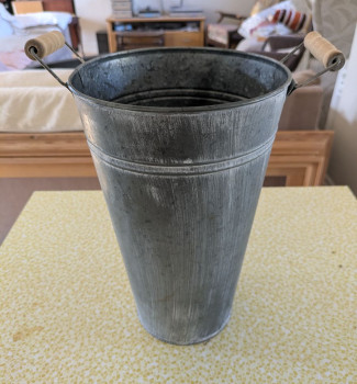 Tall metal bucket. Used for holding unlit sparklers at my wedding - could also be used for flowers / confetti.