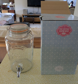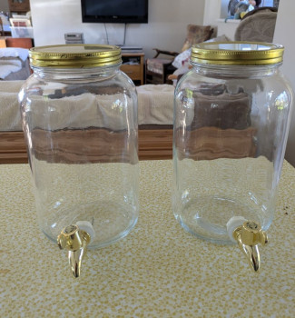 Glass drinks dispensers with taps.