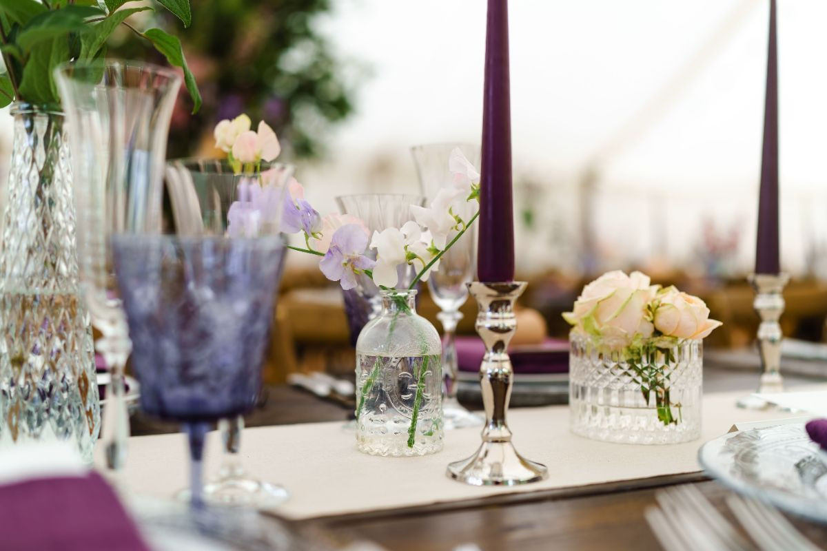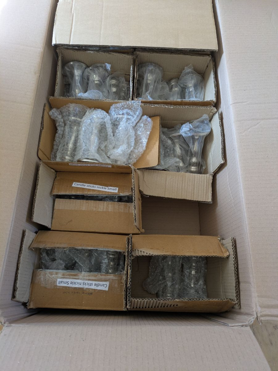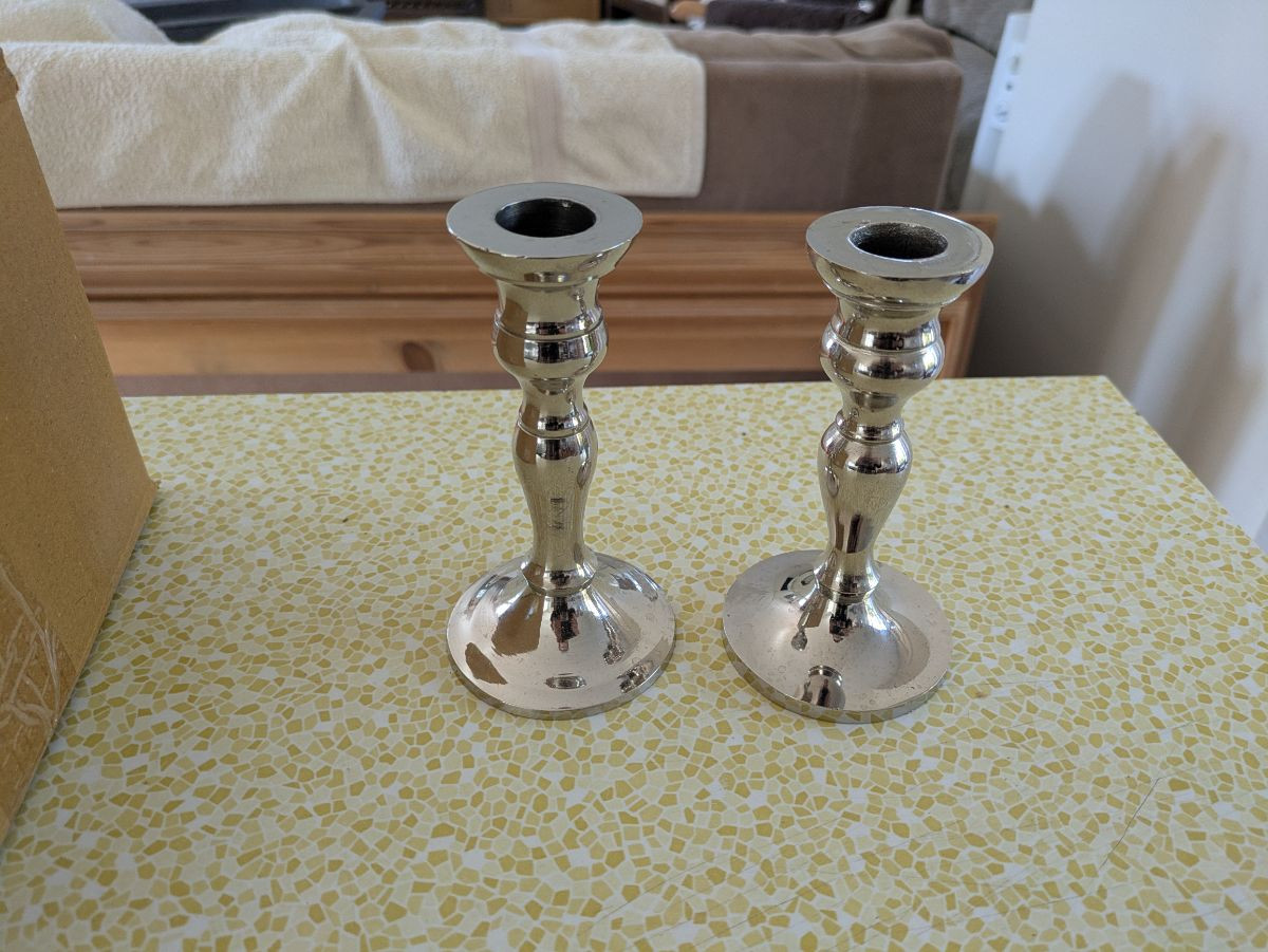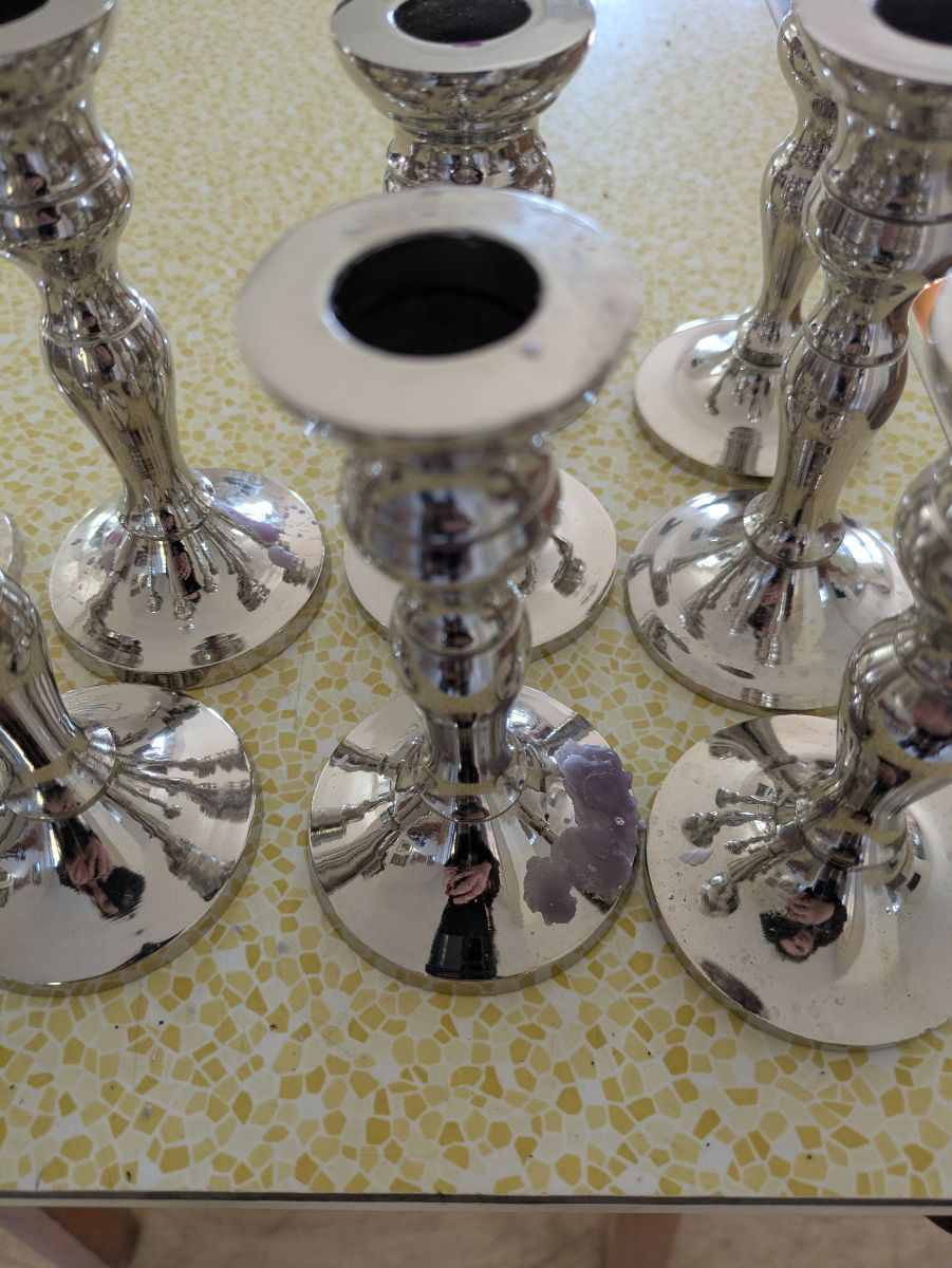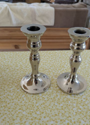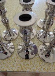 Elegant silver metal candle holders.