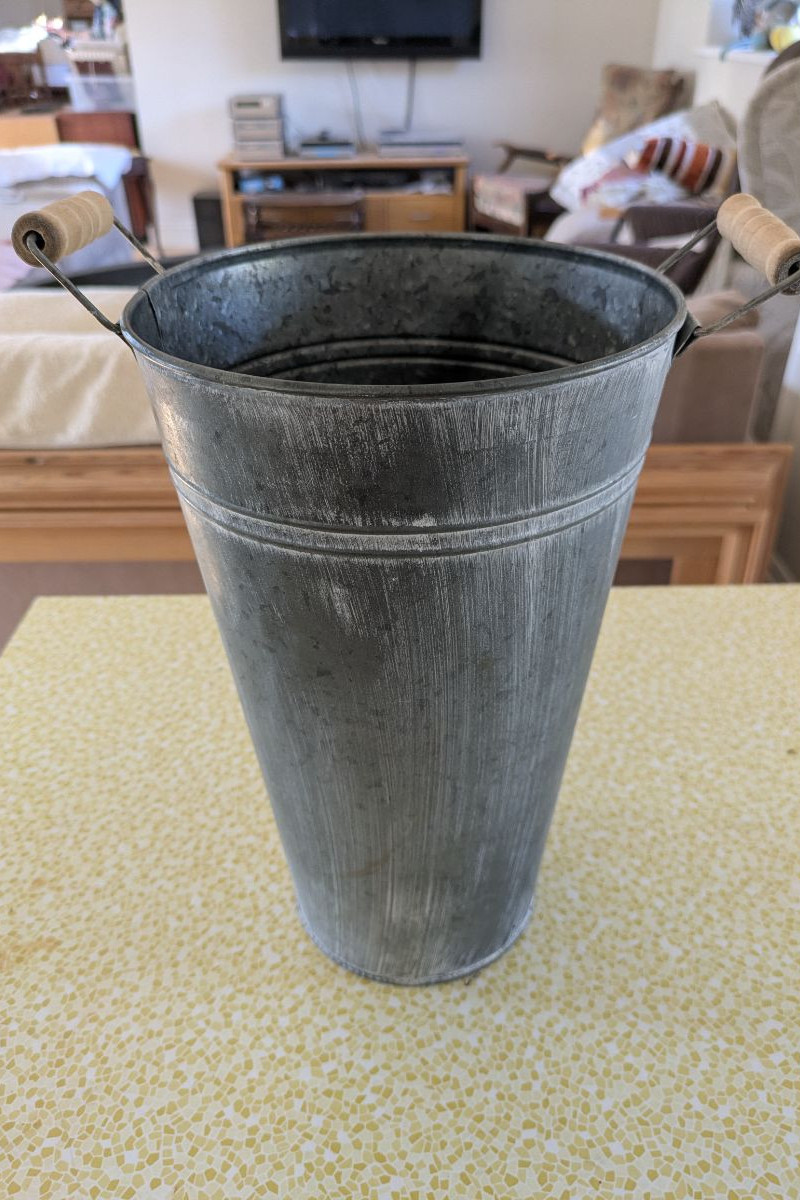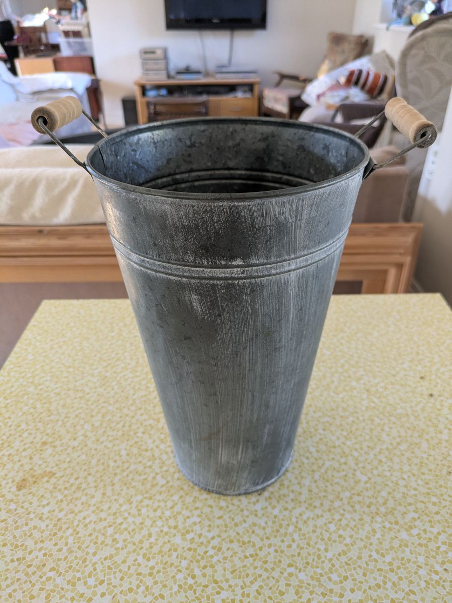 Tall metal bucket. Used for holding unlit sparklers at my wedding - could also be used for flowers / confetti.