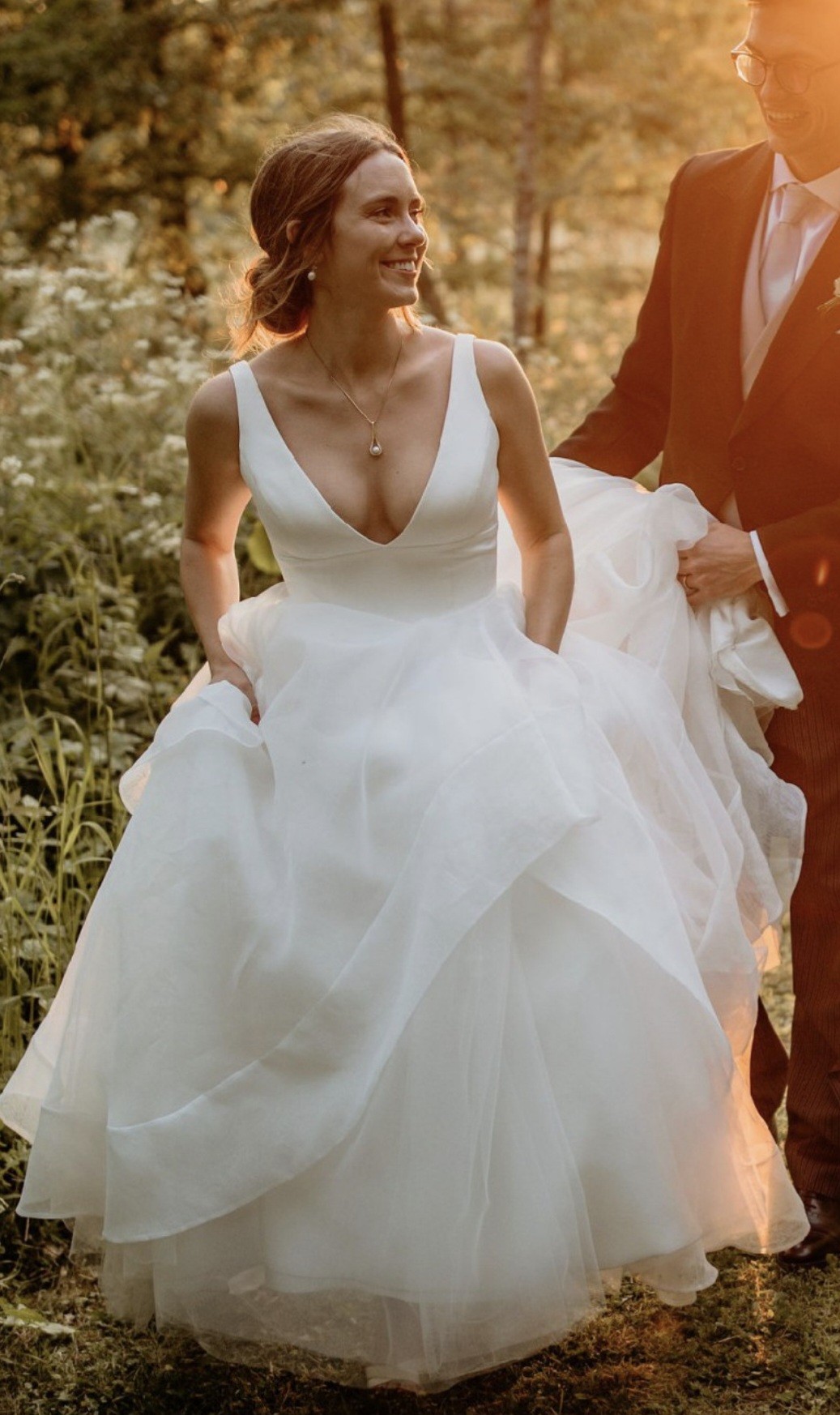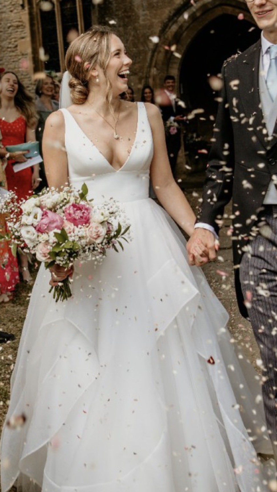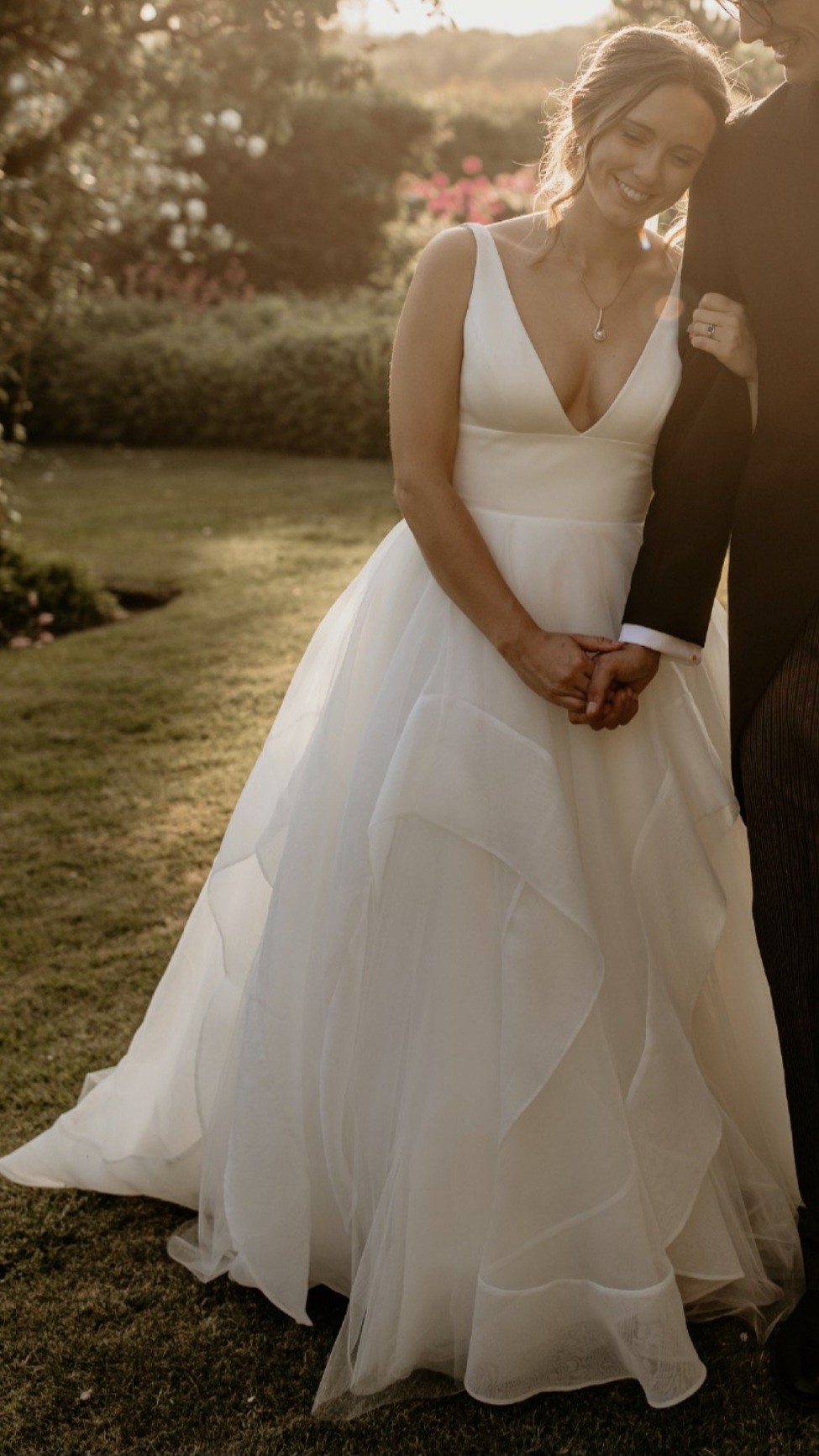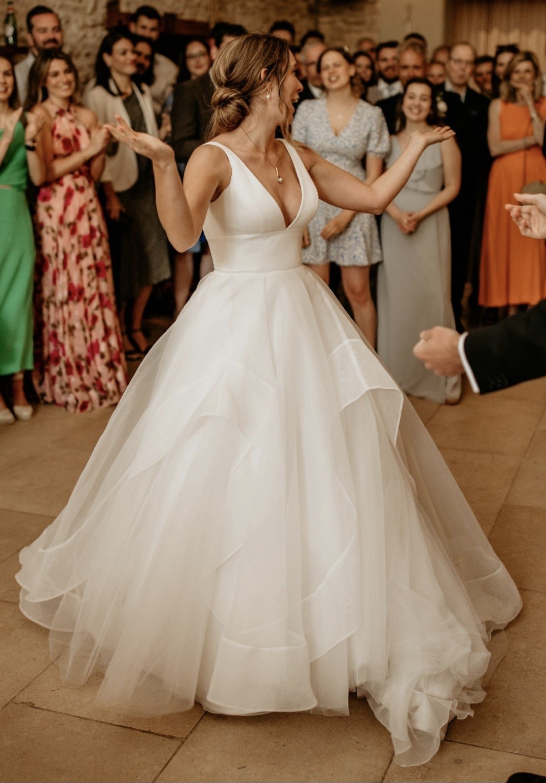 I fell in love with this dress because it's fun, young and flattering. I felt great in the dress and so secure that I could dance the night away without worrying. It has lots of layers which makes it really fun but I didn't get hot, even on a warm day. I've had it dry cleaned but there are obviously some marks however because of the style it's not obvious when worn.