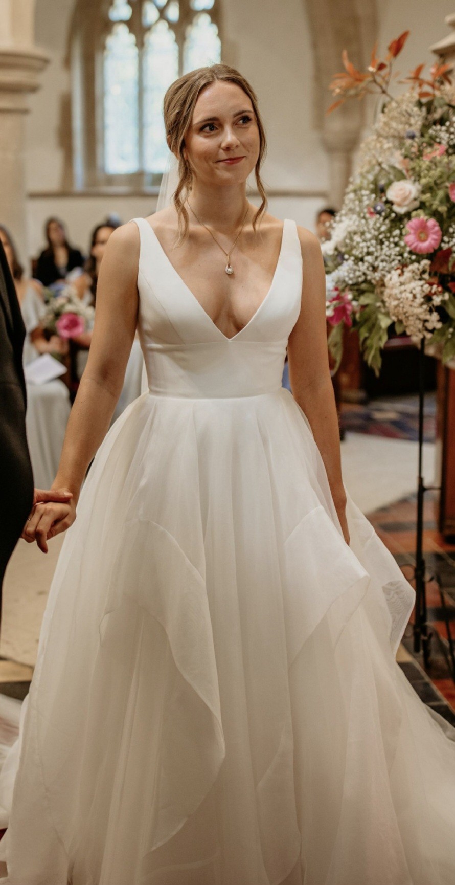 Length taken up (I'm 5ft 5 and was wearing 4 inch heels). Shoulders were a bit big so we're taken in.Waist and cup size weren't changed.
