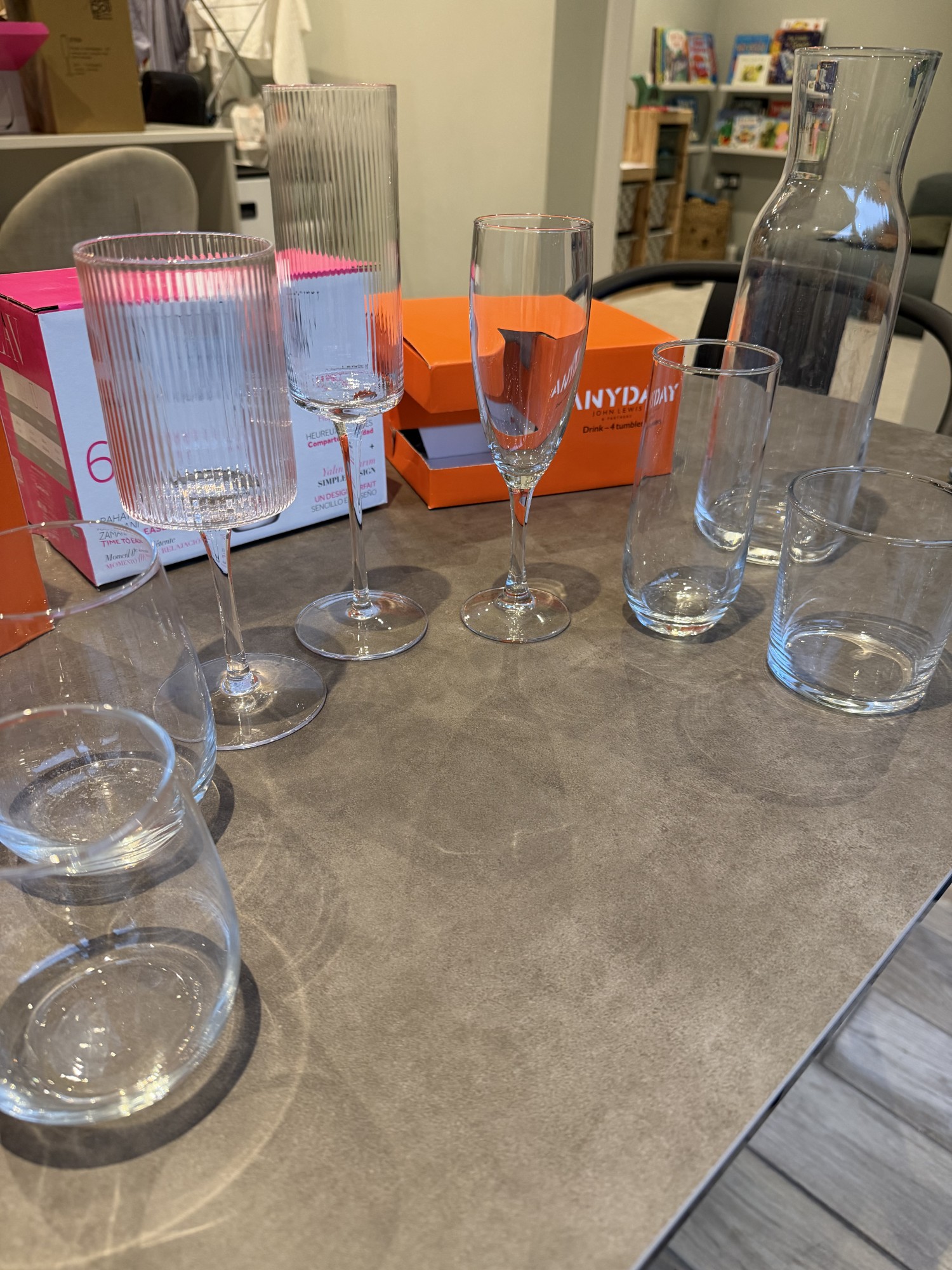 We are selling the glasses we used at our wedding. They have all only been used once and are in perfect condition. I have washed them and they are ready to be reused. We are not 100% sure on the quantities of each one, but you’re more than welcome to come and look through all the glasses to get and exact quantities.