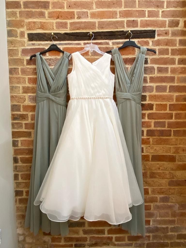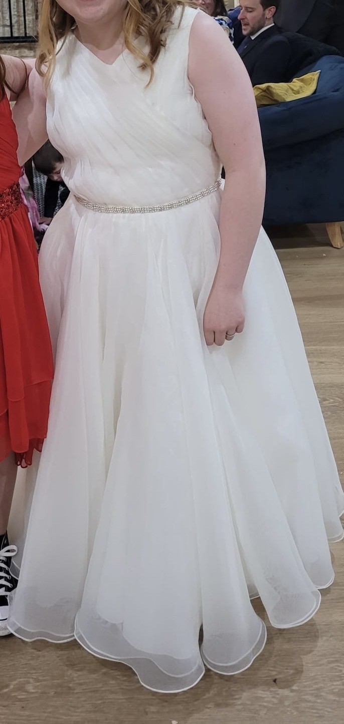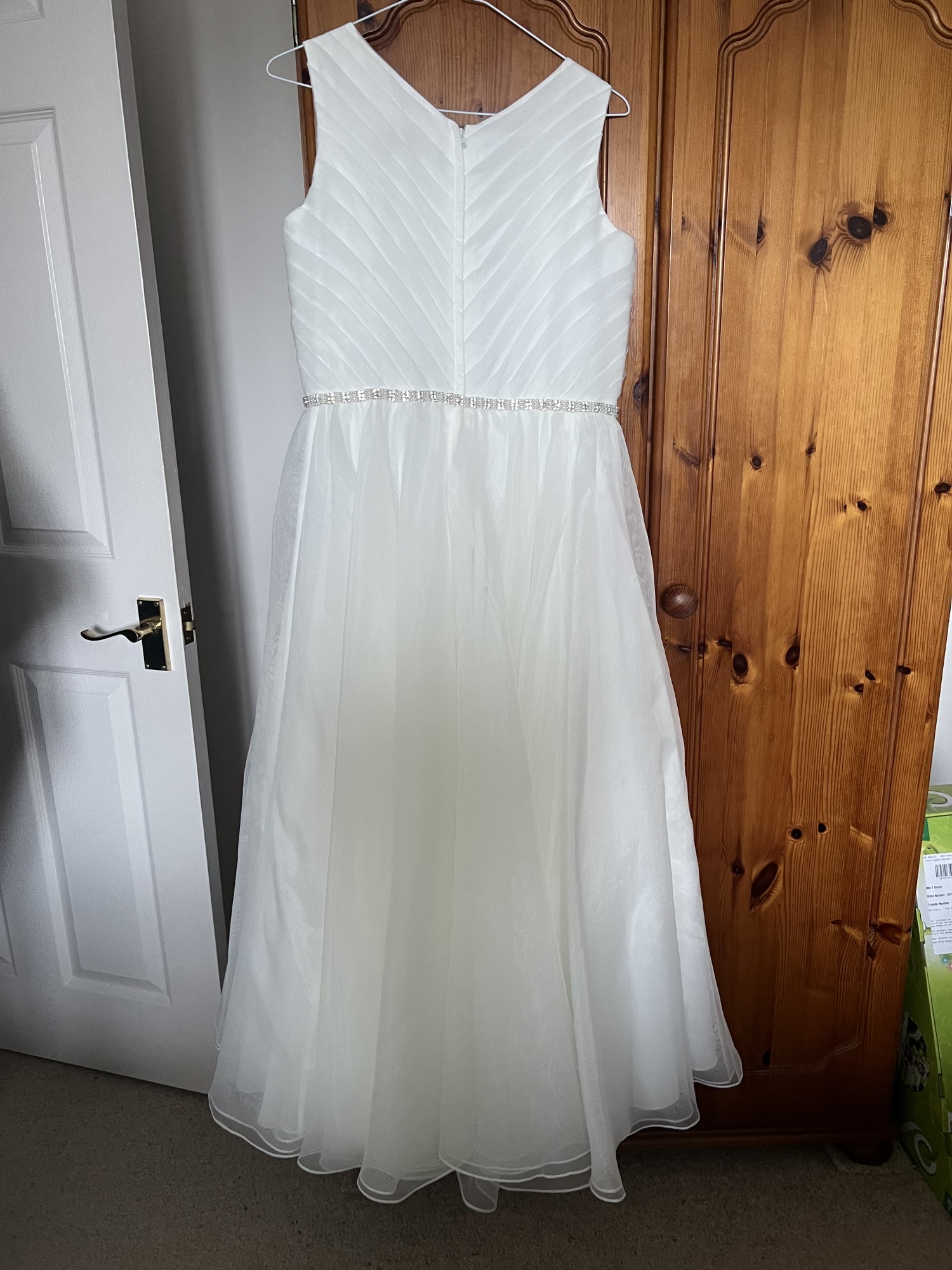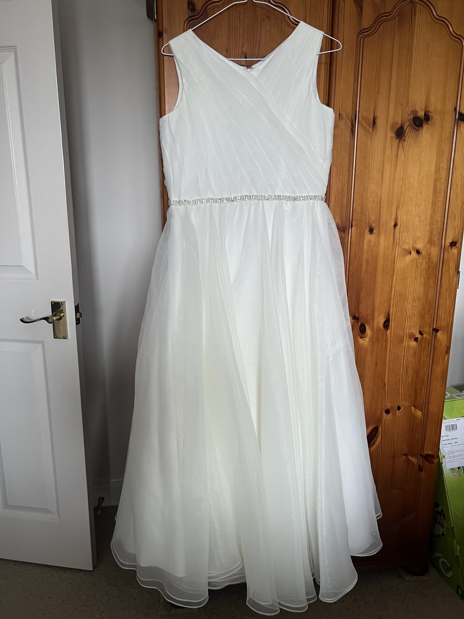 Ivory bridesmaids dress by Richard Designs age 14. No alternations have been made. Dress has been worn once and dry cleaned and in like new condition.