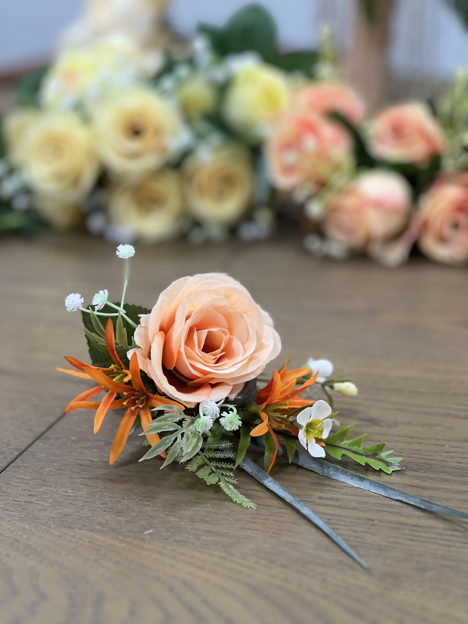 A beautifully coordinated set of wedding party florals, used once at our wedding and carefully stored (smoke-free household). Featuring soft ivory and blush tones with delicate peach accents, this collection is perfect for creating a cohesive, romantic look for your bridal party and younger attendants.