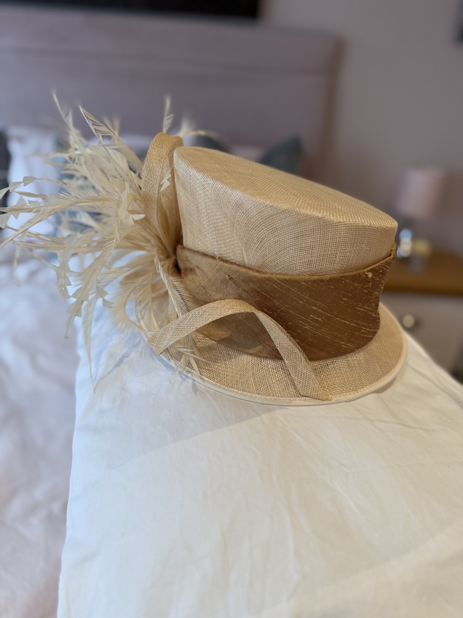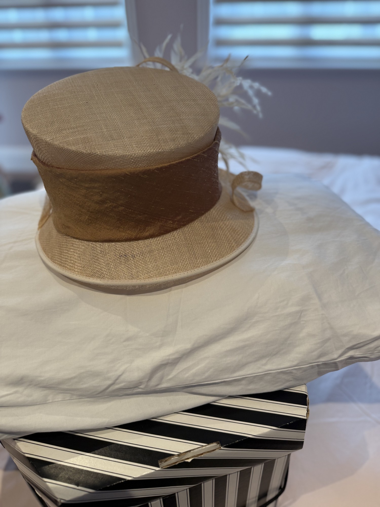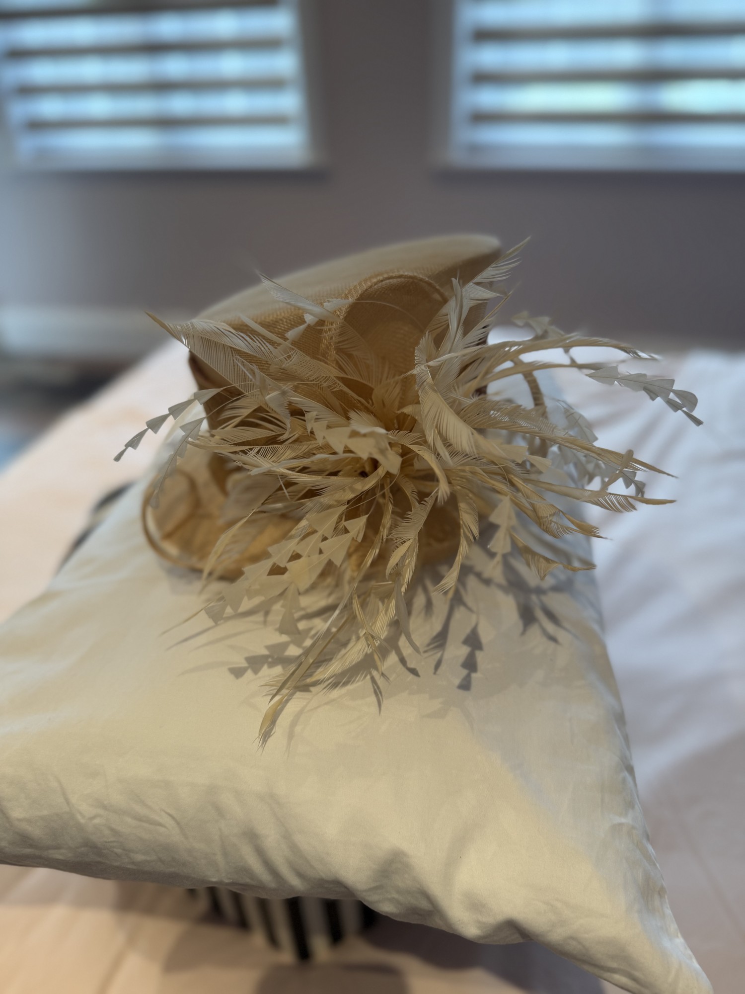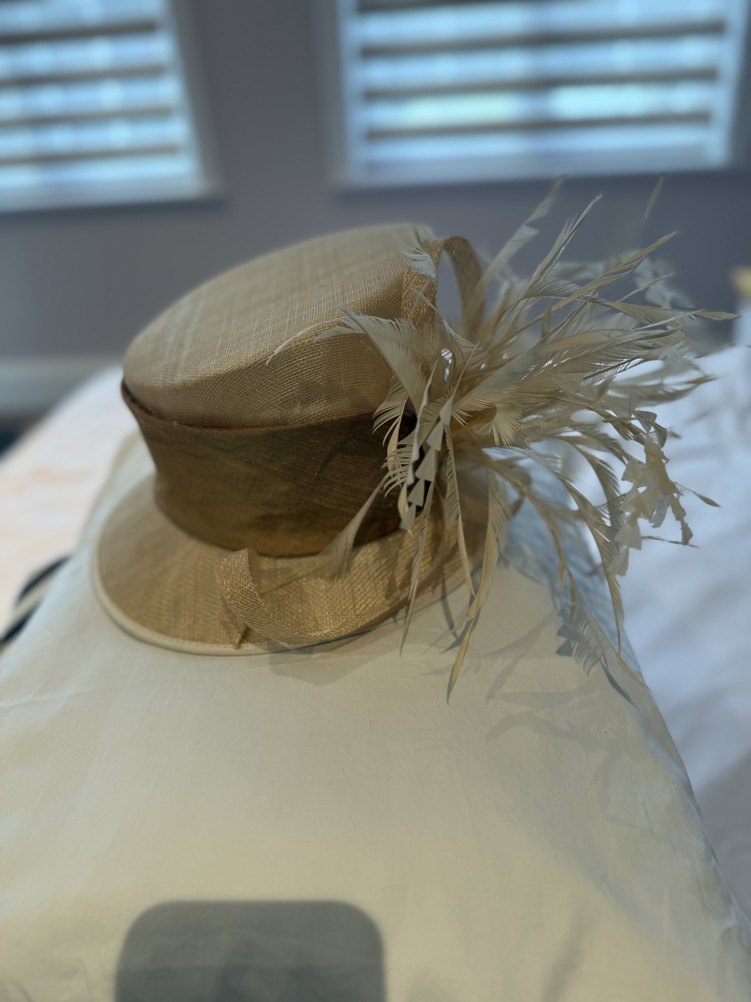 Cappelli Condochi Cream & Bronze hat with Feather detail.