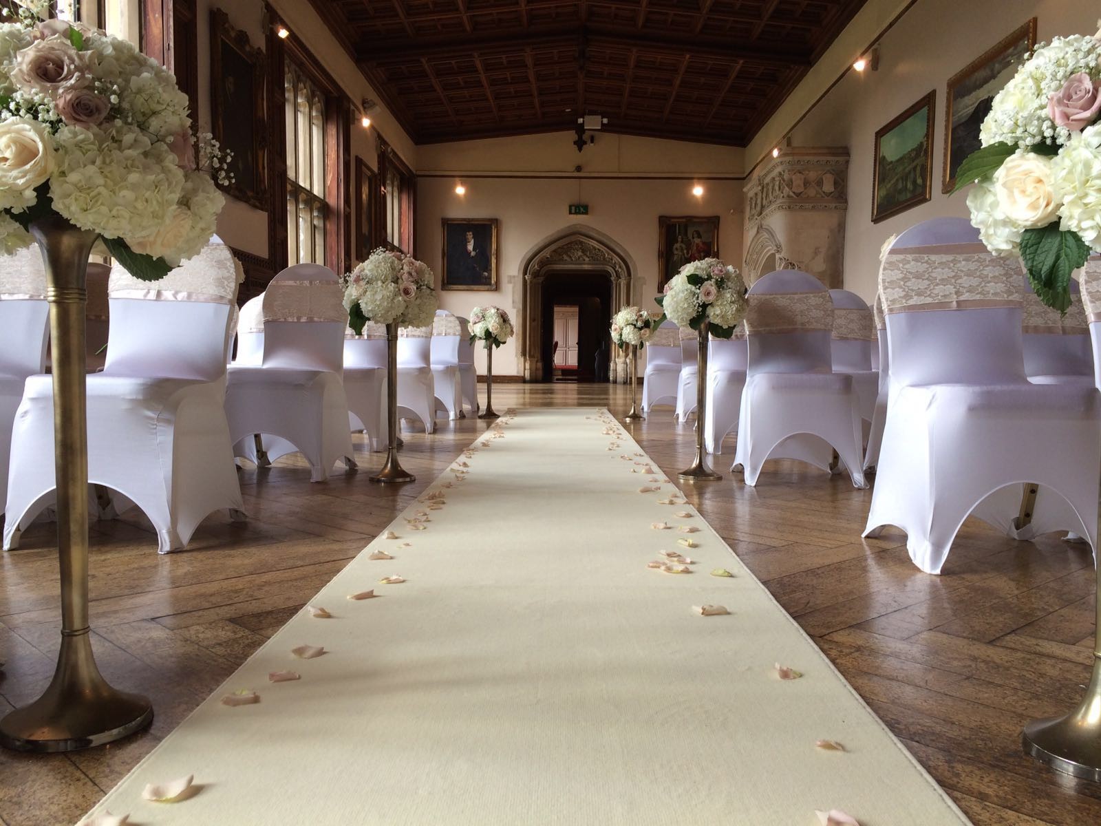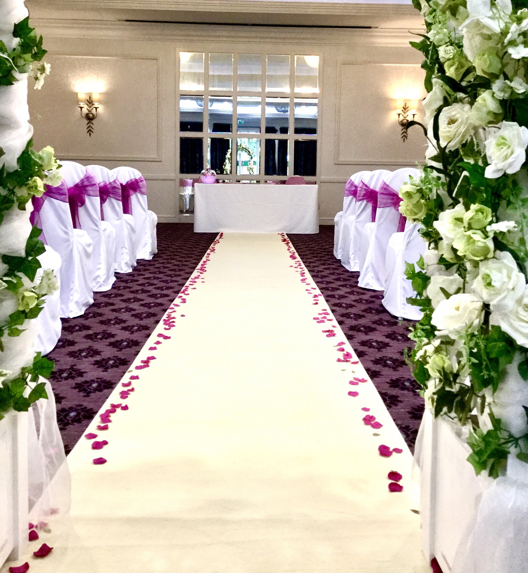 Aisle runner, good quality cream carpet. I am selling the items from my wedding decor business as I have recently retired. The aisle runner has been used a lot and is not perfect but it has been used for weddings right up to retirement and my clients have always been happy with it.