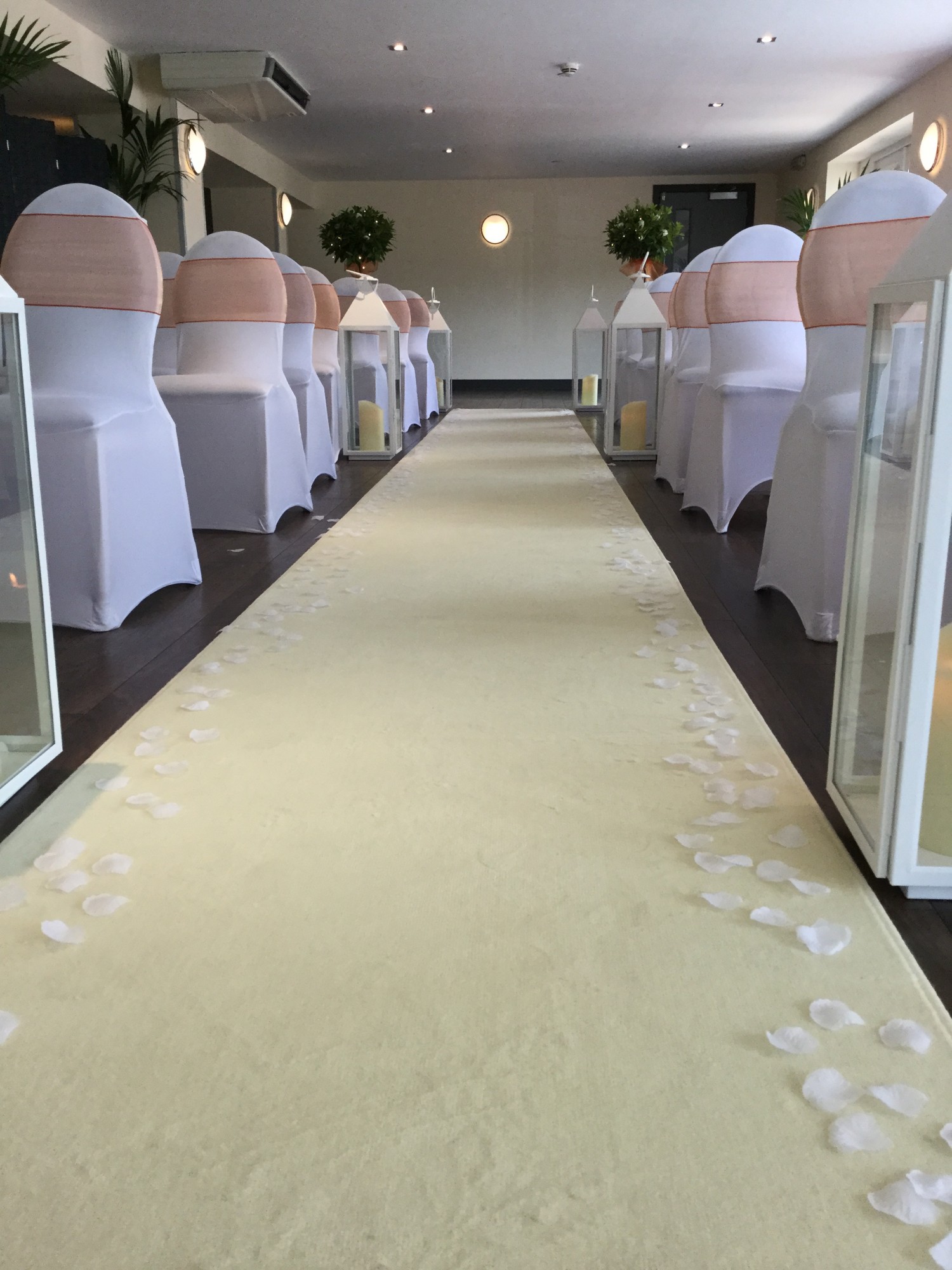 6.3m aisle runner, good quality cream carpet. I am selling the items from my wedding decor business as I have recently retired. The aisle runner has been used a lot and is not perfect but it has been used for weddings right up to retirement and my clients have been happy with it. Pick up only .