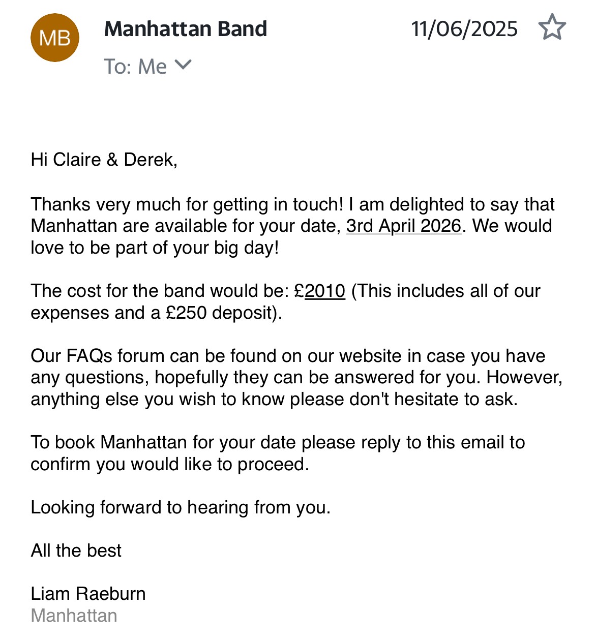 Would anyone like to have this band for a wedding or event on 3rd April 2026?