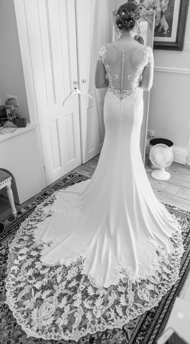 It’s very comfy for a wedding dress, not too heavy, and I felt amazing wearing it. The train makes a beautiful shape for photos and for the first dance. Although the long sleeves might make it feel like a winter dress, I did use it in summer - as the lace is so shear it let a lot of air through.