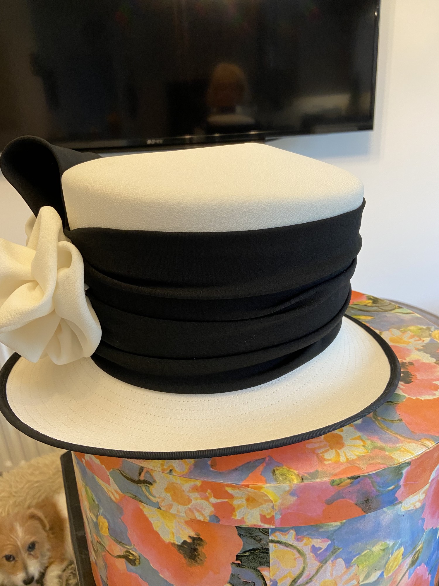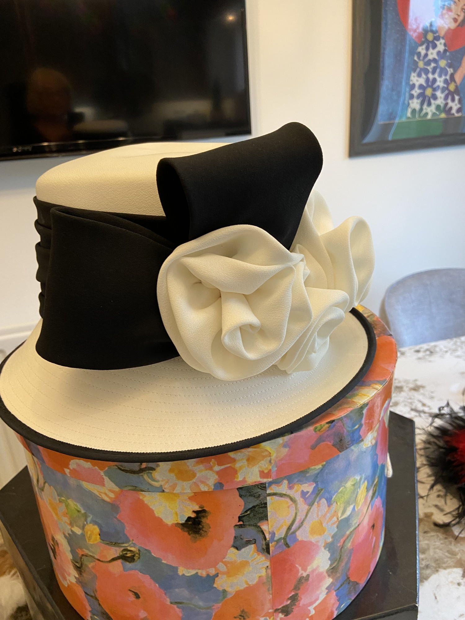Striking black and cream Condici hat, perfect for either a wedding or the races.