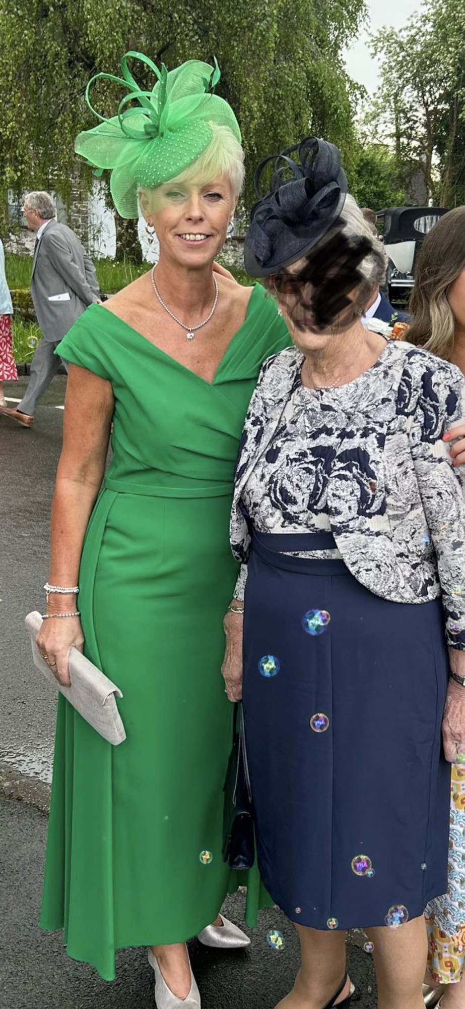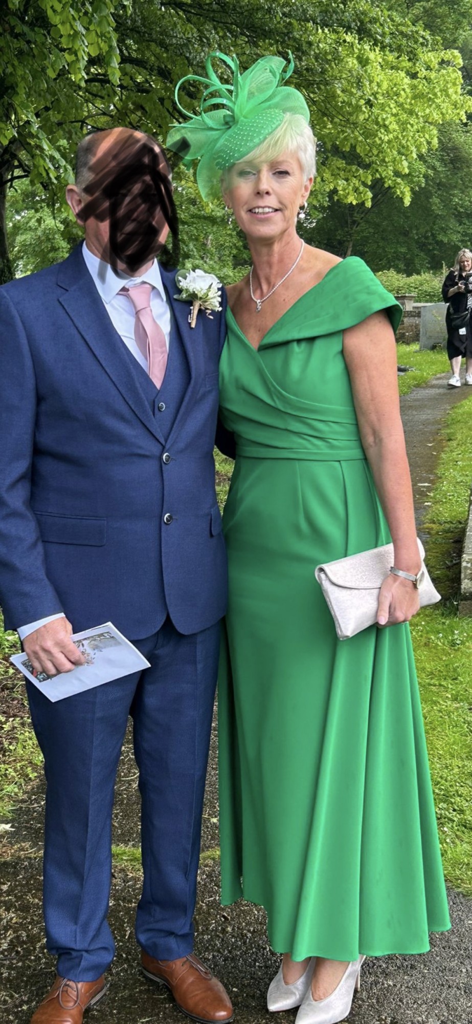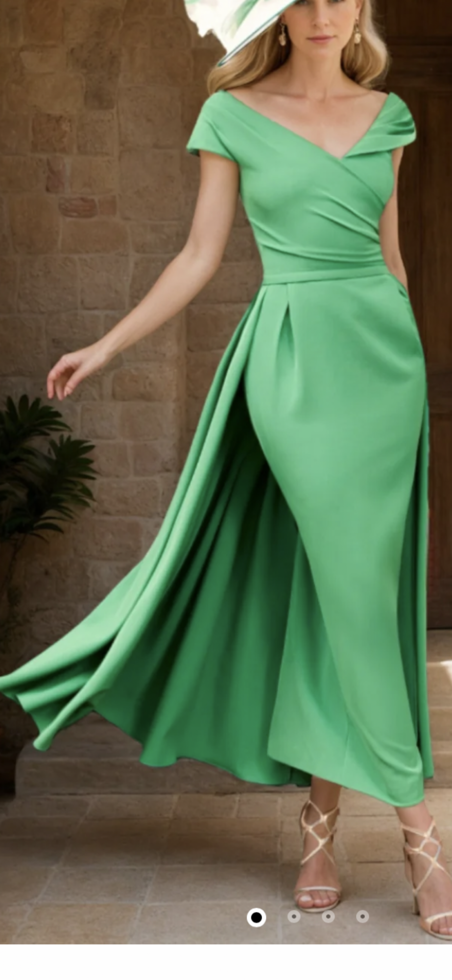 Veni Infantino dress with over skirt detail in shamrock green. Excellent condition and professional dry cleaned. Bought for my sons wedding. Made me feel very special and lots of beautiful compliments from friends.